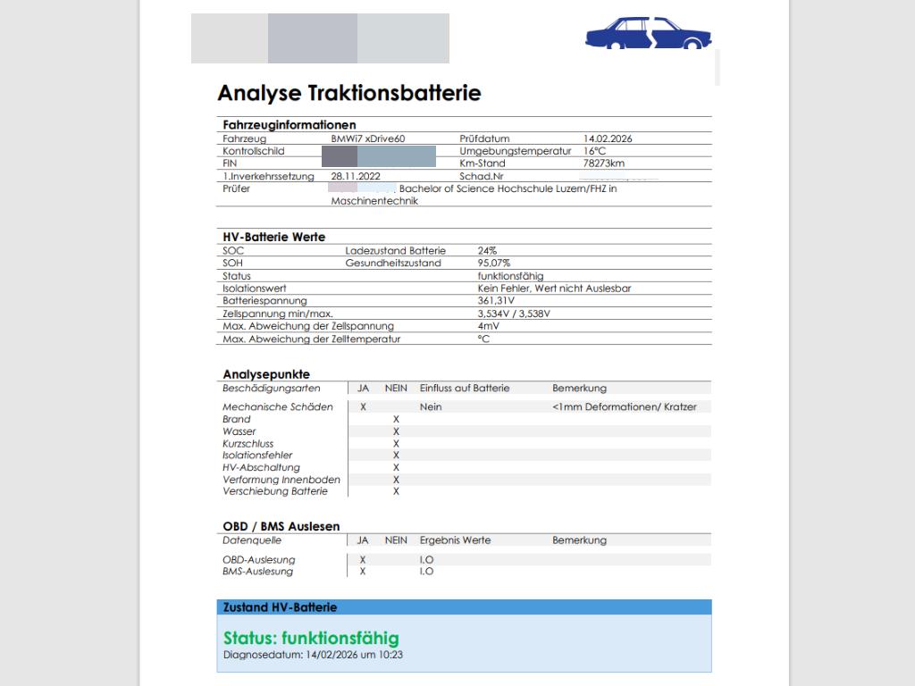 Fensterheber, elektrisch – Einklemmschutz und Komfortöffnung/-schließung, Lenkrad: M Lederlenkrad, Integral-Aktivlenkung Anpassung des Lenkwinkels der Hinterräder für ein agileres Fahrverhalten sowie ein komfortableres Rangieren in Parksituationen., Panorama-Glasdach, Ambientes Licht, Active Guard Professional, Assist: Akustischer Fussgängerschutz, Teleservices, Assist: Crash-Sensor, Condition Based Service, Licht: Begrüssungslicht, Sonnenschutzrollos – Rollo für hintere Türseitenscheiben und Heckfenster, von unten nach oben elektrisch hochfahrend, geführt – Dreiecksfenster aus Fensterführungssteg elektrisch von oben nach unten ausschwenkend – Bedienung über Displays in Türinnenspiegel, Türen: Soft-Close-Automatik für Türen – Ermöglicht ein bequemes und sicheres Schliessen der Türen ohne viel Kraftaufwand und störende Zuschlaggeräusche. Versehentlich nicht richtig geschlossene Türen werden automatisch zugezogen., Assist: Aufmerksamkeitsassistent, Alarmanlage Zur Überwachung der Türen, Front- und Heckklappe, inklusive Innenraumschutz, Neigungsalarmgeber und Notstromsirene, inklusive Diebstahlsicherung, Assist: Dynamische Brems Control (DBC), Licht: Fernlicht-Assistent – Automatisches Ein- und Ausschalten des Fernlichtes abhängig von der Verkehrssituation – Steuerung über Sensor an der Vorderseite des Innenspiegels, Media: BMW Live Cockpit Plus – Anzeigeverbund bestehend aus einem volldigitalen Instrumentendisplay mit 12,3″ und einem hochauflösendem Control Display mit 14,9″ – BMW Operating System 8 – Navigationsfunktion – Intuitive Bedienmöglichkeiten – Fahrerprofil – Tuner mit Diversity-Empfang und RDS – USB-Anschlüsse – Bluetooth / WiFi Schnittstelle – 4G LTE Connectivity – Remote Software Upgrade, Flexible Fast Charger (Mode 2) Mobiles und flexibles AC-Heimladegerät für alle Elektrofahrzeuge. – AC-Ladeleistung Haushaltssteckdose 2,3 kW, AC-Ladeleistung Industriesteckdose bis zu 11 kW – automatische Ladestromanpassung – wasserdicht – inklusive Adapterkabel für Haushaltssteckdosen (6 m) und Kabeltasche Wandhalterung sowie weitere wechselbare Adapterkabel für Haushalts- und Industriesteckdosen optional erhältlich., BMW Garantie: Repair Inclusive 4 Jahre oder 200’000 km – es gilt das zuerst Erreichte., Türen: Automatische Heckklappenbetätigung Fernöffnen mit Schlüssel, Schliessen über Heckklappentaster und Fernbedienung., Ladekabel (Mode 3) – AC-Laden an öffentlichen Ladesäulen für Typ2-Märkte – 22 kW (3-phasig) – Kabellänge: 5m – Aufbewahrung in Tasche im Gepäckraum – länderspezifisches Angebot beachten: relevant für 1-phasige Märkte und Fahrzeuge mit 22kW AC SA, Active Protection Sicherheitspaket zur Einleitung von Schutzmaßnahmen für die Insassen in drohenden Unfallsituationen: – reversible Gurtstraffung (länderabhängig) – automatisches Schließen der Fenster bis auf einen Spalt – bei Komfortsitz: Positionierung Rückenlehne von Beifahrersitz und Fondsitzen – inklusive Aufmerksamkeitsassistent, Innenbeleuchtung, Sitze: Sitzverstellung, elektrisch mit Memory – Elektrisch verstellbar: Sitzhöhe, Lehnenneigung, Sitzposition, Sitzflächenneigung – Fahrersitz mit Sitzmemory, 2 Positionen speicherbar inklusive Spiegelposition – Aussenspiegel: Memoryfunktion, Bordsteinautomatik, Paket: Connected Package Professional, Media: DAB+ Tuner, Fahrwerk: Adaptive 2-Achs Luftfederung, Paket: Erweitertes Außenspiegelpaket – elektrisches Heranklappen auf Knopfdruck – Fahreraußenspiegel mit automatischer Abblendfunktion, Räder: Reifendruck-Kontrolle, Klima: Klimatisierungsautomatik 4- Zonen Vollautomatische Temperaturregelung mit Temperaturschichtung und Luftmengenregelung. Die Steuerung erfolgt jeweils über Displays für Fahrer/Beifahrer und Fondinsassen, Assist: Auto-Hold-Funktion, M Sport Exterieurumfänge – Nierenrahmen in Chrom – Stoßfängerverkleidung vorn und hinten mit eigenständigem Design in Wagenfarbe, mit Einsätzen in Schwarz hochglänzend – Zierblenden in Schwarz hochglänzend bzw. Aluminium satiniert – Seitenschwellerverkleidungen mit eigenständigem Design in Schwarz hochglänzend – M Kennzeichnung an den Seiten – Einstiegsleisten vorn mit Aluminiumeinleger und M Schriftzug – Schlüssel mit M Kennzeichnung, Media: BMW Live Cockpit Professional – Anzeigeverbund bestehend aus einem volldigitalen Instrumentendisplay mit 12,3″ und einem hochauflösendem Control Display mit 14,9″ – BMW Operating System 8 – Full-Color Head-Up Display mit konfigurierbaren HUD-Inhalte – Navigationsfunktion – Intuitive Bedienmöglichkeiten – Fahrerprofil – Tuner mit Diversity-Empfang und RDS – USB-Anschlüsse – Bluetooth / WiFi Schnittstelle – Remote Software Upgrade, M Hochglanz Shadow Line mit erweiterten Umfängen, BMW Mobile Care, Assist: Driving Assistant Radarbasiertes Fahrerassistenzsystem bestehend aus: Spurwechselwarnung, Querverkehrswarnung hinten mit Bremseingriff, Safe Exit, Prävention Heckkollision, Steckdose – 2 x 12 V (in Gepäckraum und Mittelkonsole vorn) – 2 x USB-C-Anschlüsse zum Laden und zur Übertragung von Daten (Mittelkonsole vorn) – 2 x USB-C-Anschlüsse zum Laden (Mittelkonsole hinten), BMW IconicSounds Electric – steigert die Fahrfreude durch ein markantes akustisches Antriebsfeedback – Inszenierung des Antriebsounds über CID aktivierbar – Abstufung über die FES Modi: Sport: deutliches Lastfeedback Comfort: ausgewogener Akustikkomfort mit leichtem Lastfeedback Eco-Pro: hoher Akustikkomfort ohne zusätzliche Inszenierung, Lenkrad: Lenksäule elektrisch einstellbar, Media: BMW Natural Interaction – Verbindung von Sprache, Gestik und Blick für ein natürliches und barrierefreies Interaktionserlebnis. Der Fahrer kann mit sämtlichen POIs (Gebäude, Tankstellen, Ladesäulen, etc.) interagieren, indem er darauf zeigt und über einen Sprachbefehl weitere Informationen einfordert., Sitze: Sitzheizung vorne und