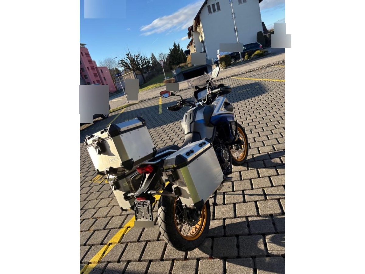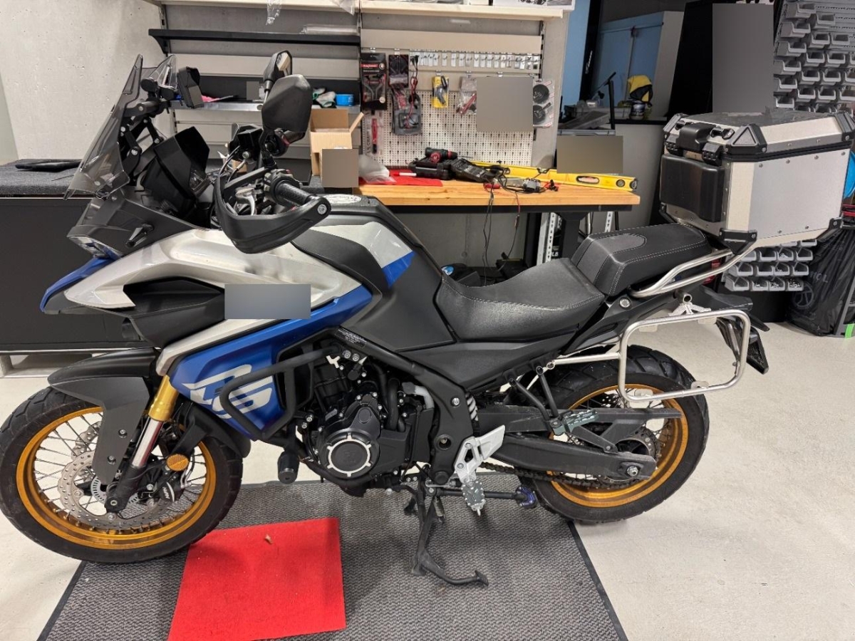 Motorrad wird ohne Navigationsgerät verkauft aber mit Heck und Seitenkoffern