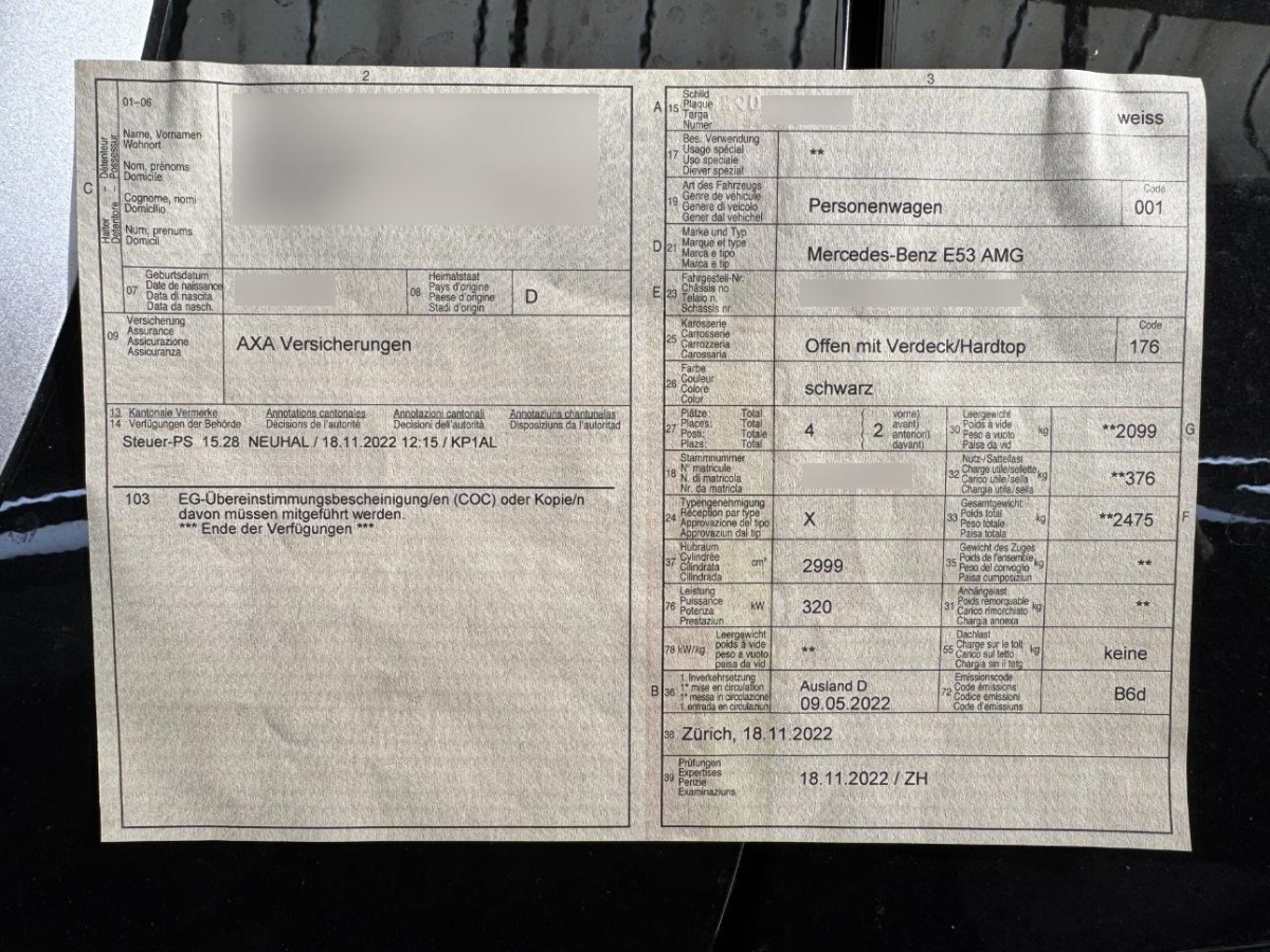 Fahrzeugausweis Vorhanden