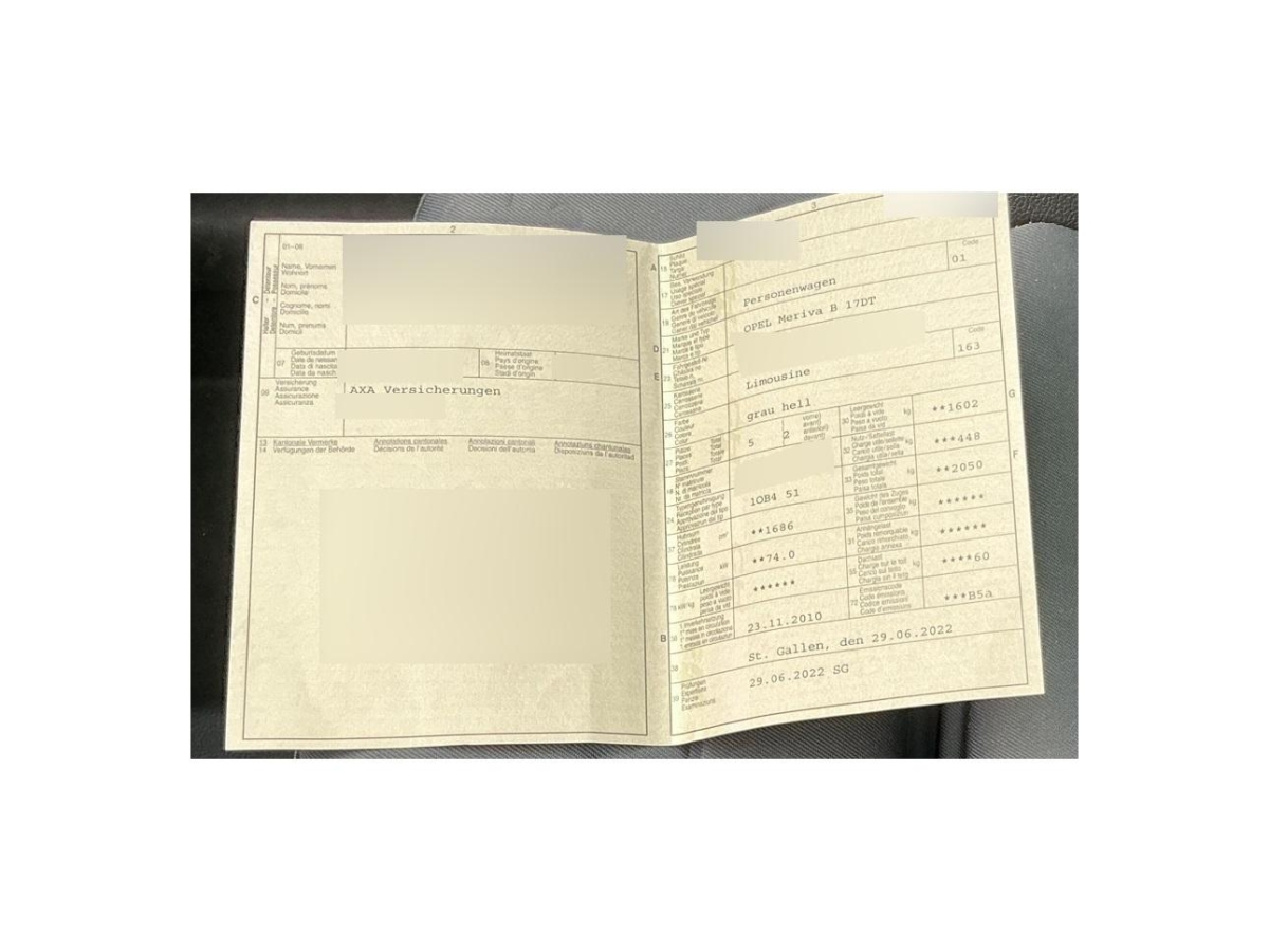 | Fahrzeugausweis | Vorhanden |