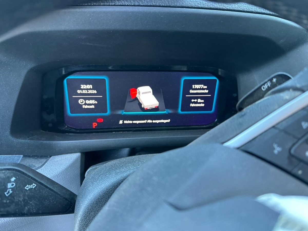 Bügel-Aussenspiegel rechts, konvex, mit integrierter LED-Blinkleuchte und Weitwinkelbereich (mit Werkspritsche = Normalspiegel), Hinterachse als Starrachse mit Längsblattfedern und Anschlagpuffern, Lenkradsperre, Assist: Ohne Geschwindigkeitsbegrenzer, Klima: Heiz- und Frischluftanlage mit mehrstufigem Frischluftgebläse, Umluftbetrieb, Positionsleuchten auf dem Dach, Staufach unter der 4-sitzigen Bank hinten, Licht: Seitliche Markierungsleuchten, Elektromechanische Parkbremse (EPB), Garantie: Garantie gegen Karosserie-Durchrostung: 12 Jahre, Innengeräusch-Dämpfungsmaßnahmen Premium, Assist: Front Assist mit Warnen und Bremsen auf Fahrzeuge, Fussgänger und Radfahrer, Seitenscheiben vorn und hinten und Heckscheibe in Wärmeschutzglas, Bordwerkzeug, 4 Sicherheitsgurte im Fahrgastraum, Ablagenpaket 2: Dachgalerie mit zwei 1 DIN-Schächten und Leseleuchte, Airbag: Airbag für Fahrer und Beifahrer mit Beifahrer-Airbag-Deaktivierung, Räder: Reifendruck-Kontrollsystem (direkt messend), Kühlerschutzgitter, unlackiert, LED Fahrerhausbeleuchtung, 75 Liter Treibstofftank, Assist: Spurhalteassistent „Lane Assist”, Assist: Ablenkungs- und Müdigkeitserkennung, Assist: Einparkhilfe im Front- und Heckbereich, Vorbereitung Alcohol Interlock, Bügel-Aussenspiegel links, konvex, mit integrierter LED-Blinkleuchte und Weitwinkelbereich (mit Werkspritsche = Normalspiegel), Heckfenster, Garantie: 2 Jahre ohne Kilometerbegrenzung, Sitze: 2 Einzelsitze im Fahrerhaus, Media: Digital Cockpit Pro (10´´-TFT-Farbdisplay), Räder: Tire Mobility Set (Reifendichtmittel und 12 Volt Kompressor), Stossstangen vorne in Grau, Ohne Kindersicherung im Fahrgastraum, 4 Becherhalter im Fahrerhaus, Garantie: Garantie gegen Lackmängel: 3 Jahre, Assist: Verkehrszeichenerkennung, Getriebe: 8-Stufen-Automat, 2 12-V-Steckdosen im Fahrerhaus (in der Schalttafel), Türen: 2 Türen für Fahrgastraum, Bodenbelag im Fahrerhaus aus Gummi, Abschlussträger in breiter Ausführung mit L = 1.899 mm und H = 258 mm, geschraubt, Assist: Ohne Totwinkelwarnung (Blind Spot Information System BSIS), ohne Anfahrwarnung (Moving Off Information System MOIS), Polster: Sitzbezüge in Stoff, Dessin Austin, Instrumenteneinsatz (km/h); Anzeigen für Geschwindigkeit, Gesamt-/Tagesstrecke, Elektromechanische Lenkung, Lenkrad in Höhe und Reichweite verstellbar, Trittstufe in Frontstossstangen, Lackierung: Uni-Lackierung Candy Weiss, 12-V-Steckdose und 2 Becherhalter in der Armaturentafel, Handschuhfach und Ablagefächer im Armaturenbrett, Elektrische Klemmleiste und Vorbereitung für Funktionssteuergerät, Elektrische Fensterheber im Fahrerhaus, Räder: Sommerreifen, Lenkrad: Leder Multifunktionslenkrad mit Tiptronic, Räder: Stahlfelgen 16″ mit Reifen 205/75 R16, Wärmeschutzverglasung rundum, Motor-Start-Stopp-System mit Bremsenergie-Rückgewinnung, Innenspiegel abblendbar, Media: Digitaler Radioempfang DAB+, ESP, elektronisches Stabilitätsprogramm und ABS, Rückwandfenster, 2 Funkschlüssel, Wegfahrsperre, elektronisch, Haltegriff an der A-Säule auf Fahrer- und Beifahrerseite, Garantie: VW Anschlussgarantie (2+3 Jahre, max. 200’000km), Ablagefächer in den Fahrerhaustüren, Licht: Nebelschlussleuchte, Aussenspiegel elektrisch verstellbar und beheizbar, 2 Fenster ausstellbar im Fahrgastraum, Zentralverriegelung „Keyless-Go” ohne Safesicherung, Vorderachse mit McPherson Federbeinen, Stabilisator und Koppelstange, Licht: Leuchtweitenregulierung, Assist: Multifunktionskamera, Dreipunkt-Automatiksicherheitsgurte mit Gurthöhenverstellung und elektrischen Gurtstraffern vorn, Assist: Berganfahrassistent, Mittelausströmer, seitliche Ausströmer, Fussraumausströmer und Defrosterdüsen, Getriebe: Ohne Nebenantrieb von Getriebe, Licht: Tagesfahrlichtschaltung mit Assistenzfahrlicht, Servolenkung, Assist: Traktionskontrolle, Scheibenbremsen vorne und hinten, Räder: Radmittenabdeckungen, Fahrwerk: Vorderachse (1.800 kg Traglast)