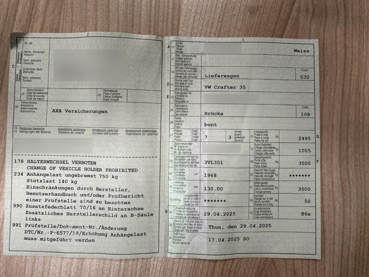 Fahrzeugausweis Vorhanden