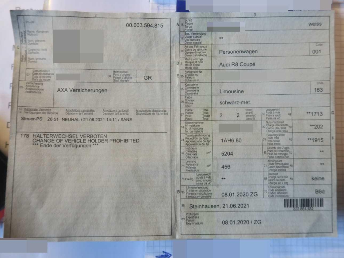 | Fahrzeugausweis | Vorhanden |