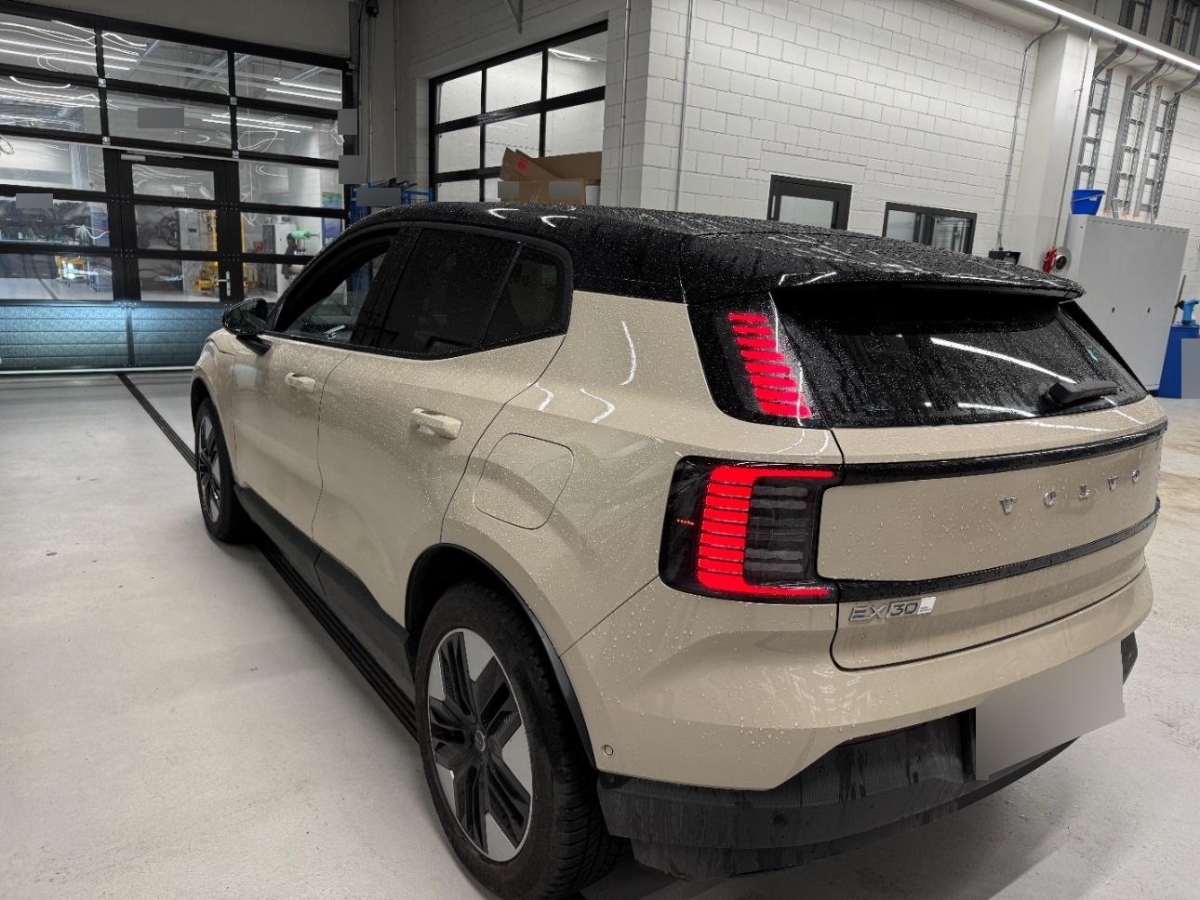 Aussenspiegel in Black Stone, Assist: Park Pilot Assist – automatische Einparkfunktion, AC-Ladung bis 22 kW (Onboard Charger), Ladekontrollanzeige, eingestellter Stromgrenzwert (ab 6 A) und Ladestand in Schritten 10-100%, Vorbereitung für Anhängerkupplung, 12 Volt-Steckdose im Laderaum, Lackierung: Uni-Lackierung, Getriebe: Direktantrieb, kein Getriebe, Erste-Hilfe-Tasche und Warndreieck, Wegfahrsperre elektronisch, Umfeldbeleuchtung integriert in den Aussenspiegeln, Airbag: Airbags für Fahrer und Beifahrer mit zweistufigem Auslösesystem – Knieairbag für Fahrer, Seitenairbags für Fahrer und Beifahrer und Kopf-/Schulterairbags (IC) für alle Insassen, Heckspoiler Schwarz, Panorama-Glasdach, feststehend, Assist: Heckaufprallabschwächung – Präventivschutz bei drohenden Heckkollisionen durch schnelles Aufleuchten des Warnblinklichts, Festbremsen des Fahrzeugs und Straffen der Gurte, Assist: Parkkamera mit 360° Surround View – inkl. Einparkhilfe vorn, seitlich und hinten mit automatischem Bremseingriff (hinten), Plug & Charge – das Fahrzeug authentifiziert sich automatisch an kompatiblen Ladestationen und der Ladevorgang startet sofort. Voraussetzung ist ein hinterlegtes Lade-Konto, das über die Volvo Cars App oder einen Plug & Charge- Anbieter eingerichtet wird., Media: Android Infotainmentsystem – 12,3″-Touchscreen (31,2-cm-Diagonale) – Bluetooth)-Freisprecheinrichtung inkl. Audiostreaming – Digitale Fahrzeugbedienungsanleitung – Digitaler Radioempfang (DAB+) – 2 USB-C-Anschlüsse erste Sitzreihe (kompatibel mit Apple iPod/iPhone/ iPad) – 5G Internetverbindung, Warnton/-leuchte für nicht angelegte Sicherheitsgurte auf allen Sitzplätzen, Assist: Blind Spot Information System (BLIS) – Totwinkelassistent inkl. Spurwechsel-Warnung vor sich schnell nähernden Fahrzeugen inklusive Lenkeingriff bei Nichtbeachtung der Warnsignale, Räder: Reifendichtmittel mit 12-V-Kompressor – Höchstgeschw. 80 km/h, Sitze: Lendenwirbelstütze für Fahrer- und Beifahrersitz elektrisch einstellbar, Getönte Scheiben, Lenkrad: Sicherheitslenksäule adaptiv, Räder: TPMS Reifendrucküberwachungssystem – mit reifenindividueller Druckverlustmeldung, Assist: Hill Descent Control (HDC), Air purfilter: Erweitertes Luftqualitätssystem mit Feinstaubfilterung – nach Luftqualitätsstandard PM2,5, Volvo On Call – automatische Notruffunktion mit Übermittlung von Fahrzeugposition und -daten sowie Alarmierung des Volvo On Call Service-Centers per Knopfdruck über die „Call” Taste, Licht: Drittes Bremslicht, Rahmenlose Aussenspiegel mit Memoryfunktion, Volvo VSP Garantie: 5 Jahre oder 150’000 – Gratisservice: 10 Jahre oder 150’000 km. Reparaturen: 3 Jahre oder 150’000 km (ab 1. Inv.)., Assist: Cross Traffic Alert (CTA) – Querverkehrs-Warnung mit Bremseingriff – Warnung vor sich seitlich nähernden Fahrzeugen, Fahrradfahrern und Fussgängern beim vorwärts und rückwärts Ausparken (inkl. Bremsung beim Rückwärtsfahren bis zum Stillstand bei Nichtbeachtung der Warnsignale), Media: Android Auto – Integration des Android Smartphones in das Android Infotainmentsystem, Assist: Emergency Stop Assist – automatisches Nothaltesystem bei Nichtbeachtung von Warnhinweisen infolge von ausbleibenden Lenk-, Brems- und Beschleunigungsaktivitäten des Fahrers inkl. Aktivierung der Warnblinkanlage und automatischer Bremsung bis zum Stillstand und Notruf über Volvo On Call, 3-Punkt-Sicherheitsgurte auf allen Plätzen, Sitze: Fahrer- und Beifahrersitz elektrisch verstellbar – inkl. Memoryfunktion und Lendenwirbelstütze (4-Wege elektrisch einstellbar) für Fahrersitz, Adaptive Geschwindigkeitsregelanlage – inkl. Abstandsregeltempomat, Kurvenassistent, Überholassistent, Stop and Go Assistent, Intelligenter Geschwindigkeitsassistent (RSI), Blinkleuchten (LED) in Aussenspiegel integriert, Lenkrad: Lenkrad längs- und höhenverstellbar, Airbag: Airbag Beifahrer deaktivierbar, Mittelarmlehne vorne mit integriertem Staufach und Getränkehaltern, Scheinwerfer-Waschanlage, Digital Services – Google Services: beinhaltet Google Maps, Google Assistant, Google Play Store und unbegrenztes Datenvolumen für Karten-aktualisierungen, App-Downloads und Streaming-Dienste – Volvo Cars App (Komfortdienste wie Ver- und Entriegelung des Fahrzeugs, Direktstart der Vorklimatisierung des Innenraums und Abruf des Ladezustands der Hochvoltbatterie), Assist: Festbremsautomatik – Automatisches Festbremsen nach dem Auslösen der Airbags oder der Gurtstraffer, um Folgeunfälle zu verhindern, Innenraumbeleuchtung – Türverkleidung vorn, Tunnelleuchte vorn, Leseleuchten vorn und hinten, Gepäckraumleuchte links, Wärmepumpe – Unterstützung der Klimaanlage sowie beim Erwärmen oder Kühlen der Hochvoltbatterie zur Reichweitenoptimierung, Abfalleimer herausnehmbar, Licht: Nebelschlussleuchte, Licht: LED Rückleuchten mit Begrüssungssequenz, Klima: Klimaautomatik mit 2-Zonen-Temperaturregelung inkl. getrennter Temperaturregelung für Fahrer und Beifahrer, Gebläseautomatik und Luftverteilung inkl. CleanZone Luftqualitätssystem mit Aktivkohlefilter, Zentralverriegelung mit zwei NFC Karten – inkl. automatischer Verriegelung der Türen während der Fahrt (deaktivierbar), Bordcomputer, Media: 2 USB Anschlüsse im Mitteltunnel hinten, Assist: Oncoming Lane Mitigation – Präventiv-S chutzsystem bei Überfahren der Mittellinie und sich näherndem Gegenverkehr inkl. aktivem Lenkeingriff hin zur eigenen Fahrspur, UWB Key Tag – als Ergänzug zu den 2 NFC Karten zur Entriegelung des Fahrzeugs, Alarmanlage mit Bewegungs-/Neigungssensor – Sicherheitsschliessung, Bremssystem mit 18″ Bremsanlage vorne, 18″ hinten, Acoustic Vehicle Alerting System (AVAS) – akustischer Fussgänger-/Radfahrerschutz durch künstlich generierte Fahrgeräusche im Geschwindigkeitsbereich bis 20 km/h, Assist: TCS, Make-up-Spiegel für Fahrer und Beifahrer, Licht: LED-Scheinwerfer Thors Hammer mit Fernlichtassistent und integ
