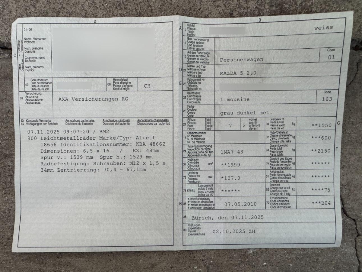 Fahrzeugausweis Vorhanden