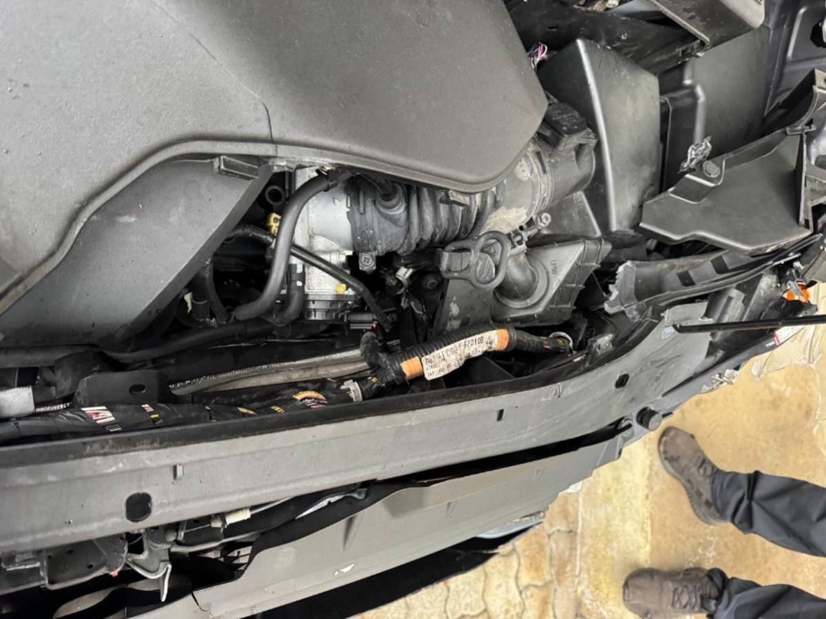 Airbag ausgelöst, Armaturenbrett, Front, Front links, Front rechts, Frontblech, Frontscheibe, Gurtstraffer ausgelöst, Interieur, Klimakühler, Kotflügel links, Kotflügel rechts, Kühler, Kühlgitter, Längsträger vorne links, Längsträger vorne rechts, Motorhaube, Motorträger, Radhaus vorne links, Radhaus vorne rechts, Scheinwerfer links, Scheinwerfer rechts, Schlossträger, Stosstange vorne