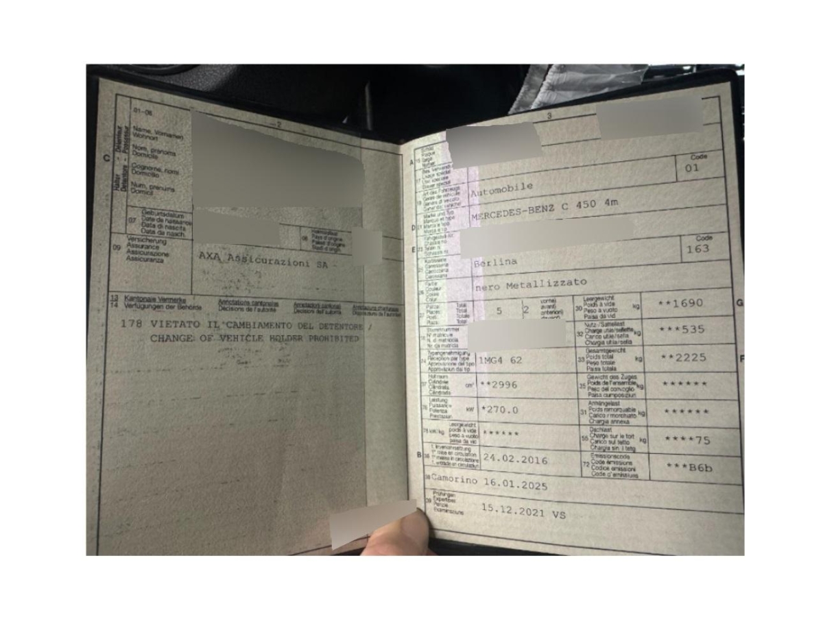Aussenspiegel rechts und links beheizbar und elektrisch verstellbar, Heckscheibe heizbar mit Zeitsteuerung, 7-Stufen-Automat 7G-TRONIC, Beleuchtetes und abschliessbares Handschuhfach, Sitze:Vordersitze mit elektrischer Höhen-, Lehnen-, und Neigungseinstellung, Airbag: Window-Kopfairbags, DYNAMIC SELECT Schalter, Elektrische Fensterheber vorne und hinten mit Komfortbetätigung und Einklemmschutz, Gurtstraffer vorne und hinten, Elektronisches Stabilitäts-Programm (ESP), Airbag: Knie-Airbag für Fahrer, Zentralverriegelung mit Fernbedienung und automatischer Türverriegelung, AMG Sportpedalanlage, Klima: Klimatisierungsautomatik THERMATIC mit 2-Klimazonen, Diamantgrill, Pollenfilter (Staubfilter), Licht: LED Heckleuchten, Paket: AMG Styling-Paket, Wärmeschutzverglasung, Aussentemperaturanzeige, Sitze:Sportsitze vorne, Katalysator geregelt, Fahrwerk:AMG RIDE CONTROL Sportfahrwerk, Steckdose 12-Volt- vorne, Antiblockiersystem (ABS), Allradantrieb permanent, Einstiegsschienen vorne mit Logo, Mittelkonsole mit Ablagefach, Assist:ADAPTIVE BRAKE mit HOLD-Funktion und Berganfahrhilfe, Kraftstofftank 66 Liter, Brillenfach, Polster:Polsterung Ledernachbildung ARTICO / Microfaser DINAMICA, Scheibenwischer vorne mit Intervall, Airbag: Seitenairbag für Fahrer und Beifahrer, Sitze:Sitzbelegungserkennung für Beifahrersitz, Media: Audio 20 USB mit Farbdisplay, RDS- Doppeltuner, 2 USB-Anschlüsse, zentrales Bedienelement, Bluetooth-Schnittstelle, Licht: Fahrlichtassistent (automatisches Fahrlicht), Sitze: Armlehne vorne mit Ablagefach, Fahrwerk:AMG Sportbremsanlage, Dekor: Dachhimmel schwarz, Bottleholder, Airbag: Airbag Beifahrer deaktivierbar, Wartungsintervall-Anzeige, Assist: ATTENTION ASSIST (Aufmerksamkeitsassistent), 5 Lautsprecher, Licht: Innenraumlicht-Paket, Lenkrad:3-Speichen-Multifunktions-Sportlenkrad in Leder Nappa inkl. Schaltpaddles, unten abgeflacht, Digital Uhr, Blinker in Aussenspiegel, Gepäcknetz im Laderaum seitlich, Assist:COLLISION PREVENTION ASSIST (Kollisionswarnung), Lenkrad längs- und höhenverstellbar, Licht: Nebelschlussleuchte, Kreuzstütze für Fahrersitz verstellbar, ECO Start-Stopp-Funktion, Interieurleisten in Alu Längsschliff, Wegfahrsperre elektronisch, Multifunktionsanzeige, Tageskilometerzähler, Aussenspiegel in schwarz, Airbag: Airbag Fahrer und Beifahrer, Media:Heckscheibenantenne, Kofferraumfernentriegelung, Drehzahlmesser, Lackierung: Uni-Lackierung, Innenlicht-Abschaltverzögerung, Assist:Reifendruck-Kontrollanzeige, Dekor: Instrumententafel in Ledernachbildung ARTICO, Fahrwerk:AMG Sport-Parameterlenkung, AMG Veloursfussmatten, Wassertemperaturanzeige, AMG Leichtmetallräder im 5-Speichen- Design 18J, schwarz lackiert und glanzgedreht, Sitze: ISOFIX Kindersitzvorrichtung, Sportauspuffanlage, Licht:Adaptives Bremslicht, Drittes Bremslicht LED, Verbandskasten, Licht: LED-Tagfahrlicht, Media:Bluetooth-Schnittstelle für Telefonfreisprechfunktion, Dekor:Türmittelfelder in Ledernachbildung ARTICO, Reiserechner, Beide Make up-Spiegel beleuchtet