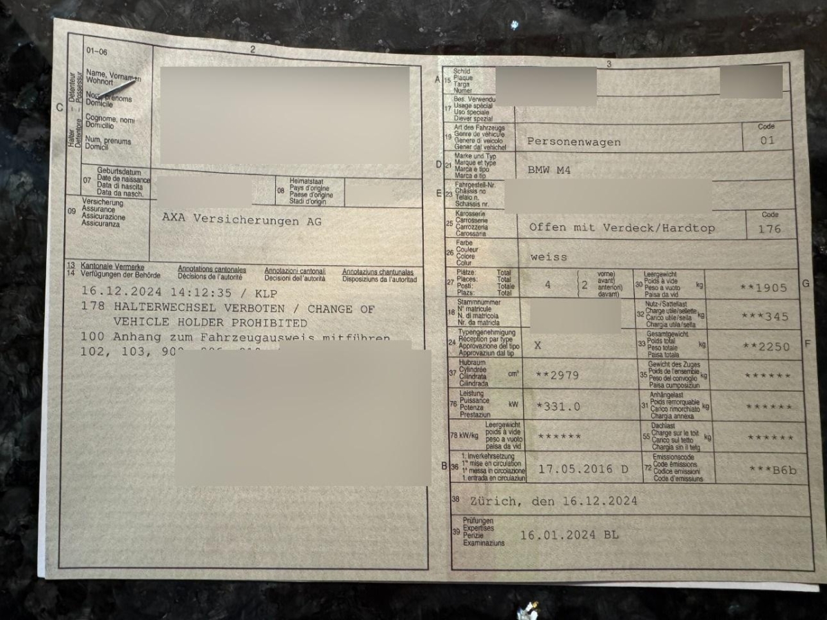 Fahrzeugausweis Vorhanden