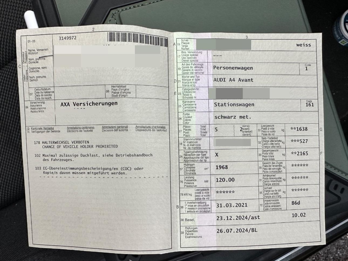 Fahrzeugausweis Vorhanden
