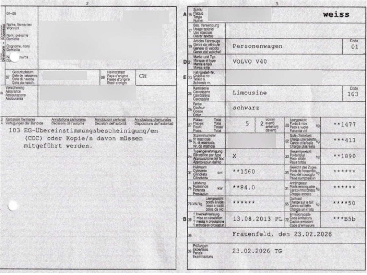 Bordcomputer, Innenlicht-Abschaltverzögerung, Airbag: Seitenairbags für Fahrer und Beifahrer, Leseleuchten vorne, Dynamische Stabilitäts- und Traktions- kontrolle DSTC, Schalthebelknauf in Leder, Leichtmetallfelgen MATRES 16J, Tagfahrlicht, Handbremshebel in Leder, Lederlenkrad Off Black, Schleudertrauma-Schutzsystem (Backguard), Gurtstraffer vorne und hinten, Komfortschliessanlage mit Funk-Fernbedienung, Steckdose 12V, Fussgänger-Airbag-Technologie, Ambientebeleuchtung, Zentralverriegelung mit Fernbedienung und automatischer Türverriegelung, Licht: Adaptives Bremslicht, Gurtkontrolle, City Safety automatische Notbremsung bis zu einer Geschwindigkeit von 50 km/h, Bremsenergie-Rückgewinnung, Tageskilometerzähler, Blinker in Aussenspiegel, Aussenspiegel rechts und links beheizt und elektrisch verstellbar, asphärisch gewölbtes Spiegelglas, Elektrische Fensterheber vorne + hinten, Zusatzheizung, Handschuhfach gekühlt, Durchtauchschutz auf allen Sitzplätzen, Lenkrad: Sicherheitslenksäule, Colorverglasung, Überrollschutzsystem ROPS, Partikelfilter und Oxydationskatalysator, Aussentemperaturanzeige, Kindersicherung an den hinteren Türen, Polsterung Standard Textil LORENSBERG, Geschwindigkeitsbegrenzer, Fahrer-Informationssystem, Seitenaufprall-Schutzsystem, Lichtwarnsummer, Leseleuchten hinten, Stossstangen in Wagenfarbe, Sitze: Vordersitze höhenverstellbar, Airbag: Airbag Fahrer und Beifahrer, Frontscheibe Verbundglas, Servolenkung, AUX-Eingang in der Mittelkonsole, Wegfahrsperre elektronisch, Lenkrad: Lenkrad längs- und höhenverstellbar, 3-Punkt-Sicherheitsgurte auf allen Plätzen, Sitze: Rücksitzlehne geteilt abklappbar, Audiosystem Performance Radio/CD, Höhenverstellbare Gurten vorne, Fahrwerk: Dynamisches Fahrwerk, Klima: Pollenfilter (Staubfilter), Airbag: Knie-Airbag für Fahrer, Armlehne vorne mit Ablagefach, Fahrwerk tiefergelegt, IDIS (Intelligent Driver Information System), Cupholder vorne, Mittelkonsole mit Ablagefach, Beide Make up-Spiegel beleuchtet, Corner Traction Control, Klima: Klimatisierungsautomatik, Getriebe: 6-Gang-Getriebe, Laderaumrollo, Make up-Spiegel beleuchtet für Beifahrer, Lenkrad: Lederlenkrad, Kleiderhaken im Fahrgastraum, Wegbeleuchtung, Assist: Bremsassistent (BAS), Start-/Stop-Knopf, 3 Kopfstützen hinten, Cupholder, Antiblockiersystem (ABS), Kreuzstützen für Vordersitze verstellbar, Verbandskasten, Dekoreinlagen Charcoal, Räder: Reifenreparatur-Set mit Kompressor, Mit Motorbezeichnung hinten, Fussraumbeleuchtung vorne, Chromapplikationen an den Bedienknöpfen, Aussenspiegel in Wagenfarbe, Textilfussmatten, ISOFIX-Befestigungspunkte für Kindersitz an den äusseren Rücksitzen, Licht: Drittes Bremslicht, Airbag: Kopf -/ Schulterairbag