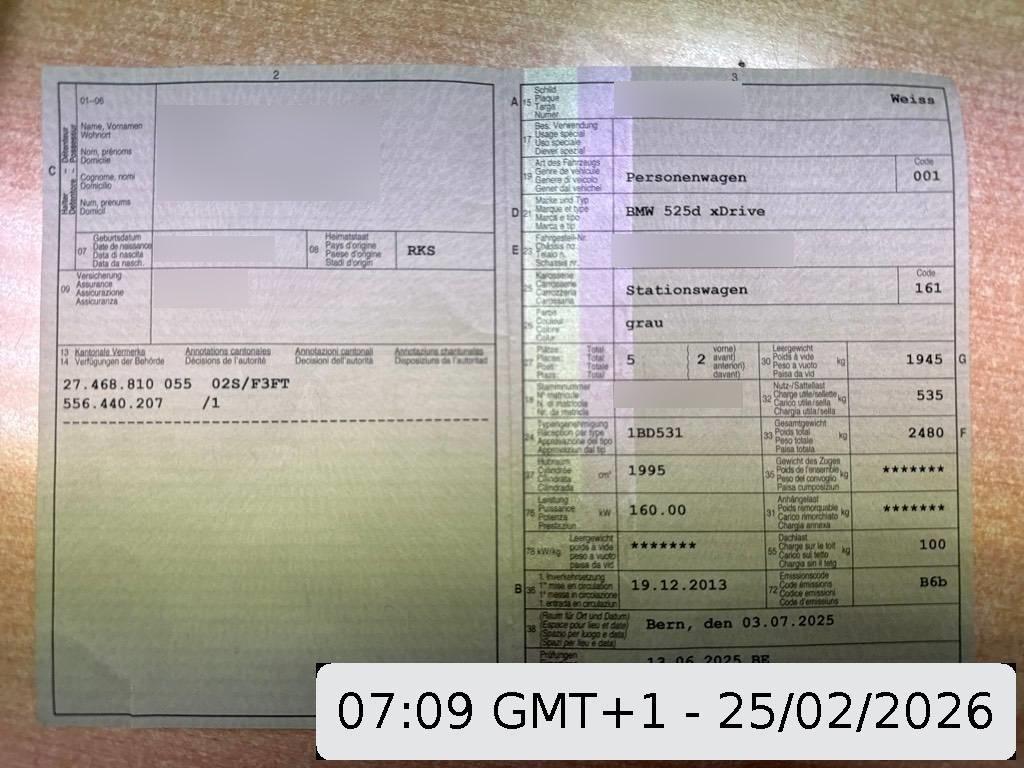 | Fahrzeugausweis | Vorhanden |