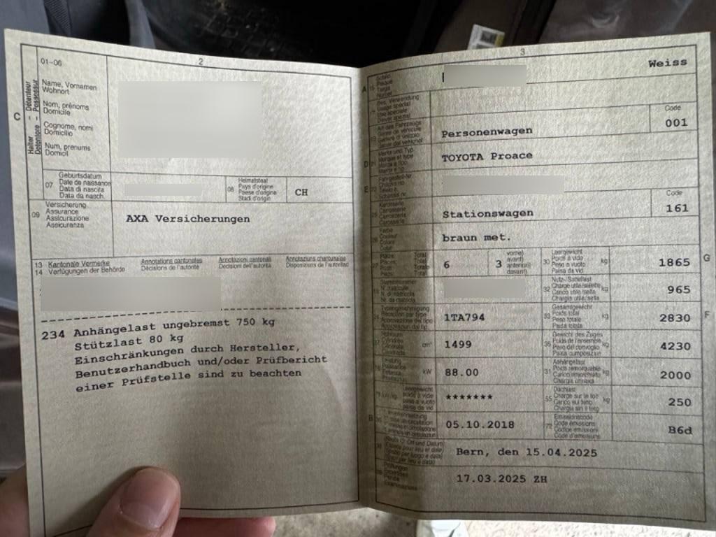 Fahrzeugausweis Vorhanden