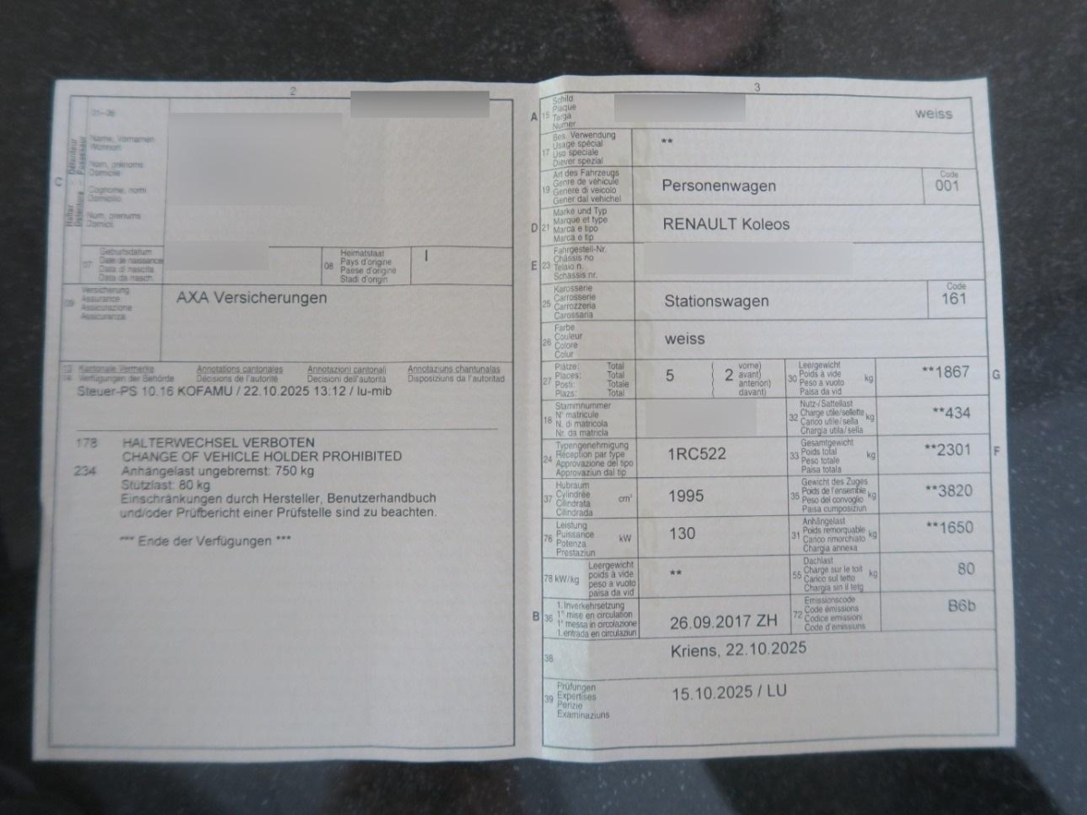 Automatische Parkbremse, Lenkrad längs- und höhenverstellbar, Touchscreen, Ladeboden variabel, Allradantrieb permanent, 3-Punkt-Sicherheitsgurte auf allen Plätzen, Digitaler Radioempfang (DAB/DAB+), Assist: Toter Winkel-Assistent, Kopfairbags vorne und hinten, Stoff-Ausstattung, Assist: Aktiver Spurhalteassistent, Compatible mit Apple CarPlay und Android Auto, Airbag Beifahrer deaktivierbar, Elektrische Fensterheber vorne + hinten, 12-Volt-Steckdose hinten, Nebelscheinwerfer mit Cornering-Funktion, Höhenverstellbare Gurten vorne, Adaptives Fahrlicht, 12-Volt-Steckdose vorne, Park Distance Control vorne und hinten mit Rückfahrkamera, Airbag: Airbag Fahrer und Beifahrer, Kreuzstütze für Fahrersitz verstellbar, 12 Volt-Steckdose im Laderaum, LED Scheinwerfer, Seitenairbag für Fahrer und Beifahrer, Rücksitzlehne geteilt abklappbar, Getriebe: 7-Stufen-Automat CVT sequentiell, 4 Leichtmetallfelgen 18J mit Pneu, Dachreling, Wegfahrsperre elektronisch, Gurtstraffer vorne und hinten, Drehzahlmesser, Radiovorbereitung, Antenne und Entstörung, Keyless Drive Hands-free, Bluetooth-Schnittstelle, Heckscheiben-Wisch-/Waschanlage mit, ABS, EBD elektronische Bremskraftverteilung, Multifunktionslenkrad in Leder, Bordcomputer, Teppichfussmatten, Verkehrsschild-Erkennungssystem, Digital Uhr, Antriebsschlupfregelung (ASR), Abgedunkelte Seiten- und Heckscheibe, Partikelfilter und Oxydationskatalysator, Easybreak: ebene Ladefläche, Sonnenblenden mit beleuchtetem Schminkspiegel, R-Link mit 7” Touchscreen, Navigation mit Europakarte, Innenrückspiegel automatisch abblendend, Berganfahrhilfe, Aussenspiegel rechts und links beheizt, elektrisch verstell- / und einklappbar, Licht: Nebelschlussleuchte, Servolenkung, Aussentemperaturanzeige, Elektronisches Stabilitäts-Programm (ESP), Zentralverriegelung mit Fernbedienung und automatischer Türverriegelung, ISOFIX-Kindersitzverankerungen hinten (2), 2-Zonen-Klimaautomatik, Sitze: Fahrersitz in der Höhe verstellbar, Tempomat mit Geschwindigkeitsbegrenzer, Pollenfilter (Staubfilter), Licht: Drittes Bremslicht, Automatische Scheibenwischer vorne und automatisches Einschalten der Scheinwerfer (Show me Home), USB+AUX-Anschluss, Räder: Reifenreparatur-Set (Tire Fit)