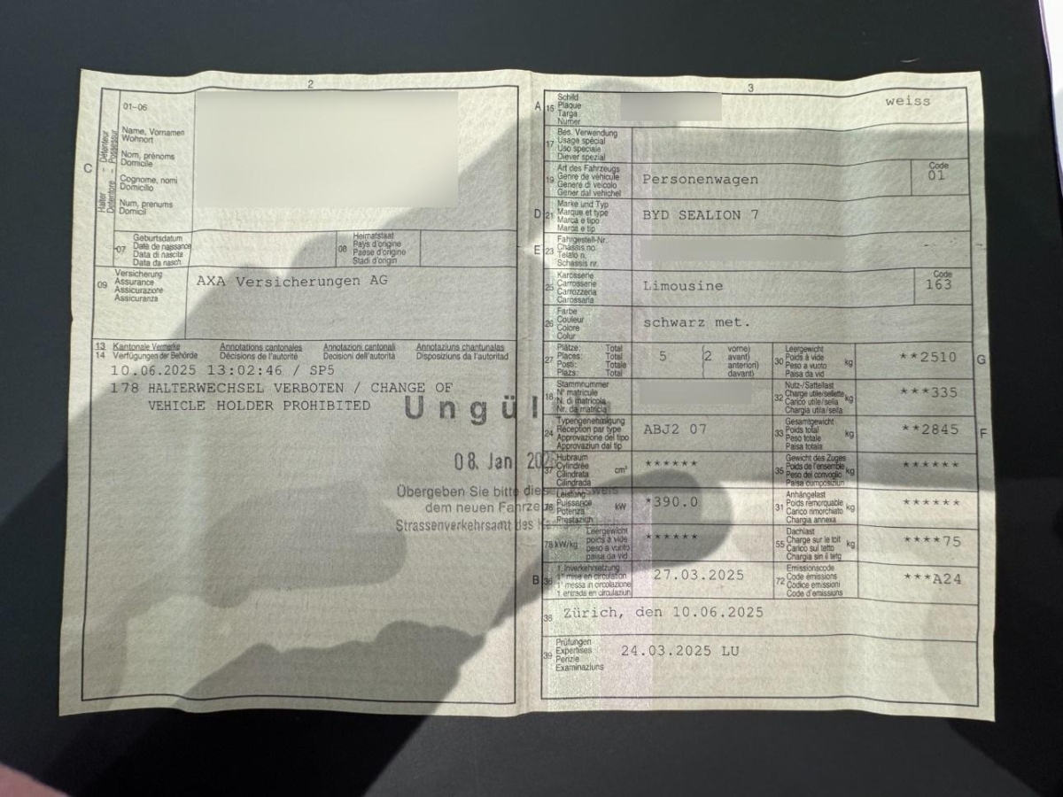 Getriebe: Direktantrieb, kein Getriebe, Ambientebeleuchtung, mehrfarbig, Klima: Zweizonen-Klimaautomatik, Assist: Hydraulischer Bremsassistent (HBA), Vordersitz-Sonnenblenden mit beleuchtetem Schminkspiegel, Airbag: Vorhangairbags, Media: USB-Anschlüsse hinten: 1 x 18W Typ C, 1 x 60 W Typ C, Vorgespannte und höhenverstellbare Sicherheitsgurte vorn – Vorgespannte Sicherheitsgurte hinten, Sitze: Fahrersitz, 2 x Dokumentenfächer, Panoramadach, elektrisch verstellbares Sonnenschutzrollo, Assist: Spurverlassensassistent (LDA) & Spurverlassenswarnung (LDW), LED-Leseleuchten hinten, Media: Navigationsystem – Das Navigationssystem beinhaltet ein 3-jähriges kostenloses Testabonnement. Die Aktivierung des Navigationsdienstes erfolgt bei der ersten Nutzung der App für Live-Navigationsdienste., Gepäckraumleuchte, Assist: Verkehrszeichenerkennung (TSR), Bodenbeleuchtung vorne, Assist: Spurwechselassistent (LCA), Blinkerleuchten im Aussenspiegel, Media: Smartphone wireless charging, 1 x 50 W, Mittelkonsolenleuchte, Assist: Berganfahrassistent (HSA), Sitze: Fahrersitz belüftet, beheizt, gespeicherte Einstellung, Licht: LED-Tagfahrlicht, Wärmepumpe, Assist: Automatische Notbremsung (AEB), Assist: Elektrische Parkbremse (EPB), Assist: Müdigkeitserkennung für den Fahrer (DFW) und Aufmerksamkeitswarnung für den Fahrer (DFW), Licht: LED-Scheinwerfer, automatisches Ein-/Ausschalten, Automatisch abblendender Rückspiegel, Media: 10,25″ TFT-LCD-Instrumententafel, Media: USB-Anschlüsse vorn: 1 x 18W Typ C, 1 x 60 W Typ C, 12-V-Stromanschluss, Sitze: Fahrersitz, elektrisch verstellbar, 8-fach, Positionsspeicher, Licht: Fernlichtassistent (HMA), Airbag: Frontairbag in der Mitte, Media: Integrierte 4G-Konnektivität2 – Cloud-Service – BYD App2, Assist: Spurhalteassistent (ELKA), Assist: Vorausschauende Kollisionswarnung (PCW), Sitze: Rücksitze, Rückenlehnenwinkel manuell einstellbar, Lenkrad: Multifunktionslenkrad, Leder, beheizt, Fahrmodus: Eco, Normal, Sport, Snow, Assist: Intelligente Geschwindigkeitsbegrenzungsinformation (ISLI), Assist: Kontrollierte Verzögerung mit Feststellbremse (CDP), Sicherheitsgurtwarnung vorne und hinten, Armlehne hinten, 2 Getränkehalter, ISOFIX und i-Size, Beifahrer- und äussere Rücksitze, Vier LED-Türleuchten, Heckscheiben, UV-Schutz, Wärmedämmung, Sichtschutzglas, Vordersitz-Fussraumleuchten, mehrfarbig, Licht: Kurvenlicht, Sitze: Rücksitze 40:60 geteilt umklappbar, Assist: Querverkehrswarnung vorn (FCTA) & Querverkehrsbremse vorn (FCTB), Mittelarmlehne hinten, 2 Getränkehalter, Antiblockiersystem (ABS), Assist: Querverkehrswarnung hinten (RCTA) & Querverkehrsbremse hinten (RCTB), Heckscheibe, beheizt, beschlagfrei, entfrostend, Assist: Auto Hold, Aussenspiegel elektrisch verstellbar, elektrisch anklappbar, beheizbar – mit Rückwärtsneigungsautomatik, Positionsspeicher, Assist: Vorwärtskollisionswarnung (FCW), Elektrische Heckklappe, Kick-to-Open-Funktion, Licht: Follow-me-Home Scheinwerfer werden vorgerückt eingeschaltet/verzögert ausgeschaltet, Mittelarmlehne vorn, 2 Getränkehalter, Assist: Heckkollisionswarnung (RCW), Easy entry, Media: Dynaudio Soundsystem, 12 Lautsprecher – DAB+ & UKW, Airbag: Fahrerairbag und Beifahrerairbag – Beifahrerairbag mit Deaktivierungsschalter, Assist: Fahrerablenkungswarnung (DDW), Dynamische Blinker, Lackierung: Metallic-Lackierung, Klima: Belüftungsdüsen hinten, Fahrwerk: Fahrdynamikregelung (VDC), Reifendruckkontrolle (TPMS), Räder: 20″ Bicolor- Leichtmetallfelgen 245/45 R20, ESP (Elektronisches Stabilitätsprogramm), Handschuhfachleuchte, Licht: Dynamisches Begrüssungslicht, Sitze: Fahrersitz mit elektr. Schenkelstütze, Türöffnungswarnung (DOW), Garantie: Garantie 6 Jahre oder 150’000 km, 11kW On-Board Charger (OBC), Privacy glass in fond, Polster: Leder-Sitze, Assist: Toter-Winkel-Warnung (BSD), Sitze: Rücksitze beheizt, Assist: 360° view camera, Fussraumbeleuchtung in den Aussenspiegeln, Licht: Intelligenter Fernlichtassistent (IHBC), Airbag: Seitenairbags vorn und hinten, Garantie: Batterie-Garantie 8 Jahre oder 200’000 km, Assist: Traktionskontrolle (TCS), Sitze: Beifahrersitz, 2 x Dokumentenfächer, Media: Intelligente Sprachsteuerung „Hallo, BYD” – Vier-Zonen-Sprachsteuerung, Servolenkung, Sitze: Fahrersitz, elektrische Lordosenstütze, 4-fach, 4 x One-Touch-Fensterheber mit Einklemmschutzfunktion, Keyless entry & keyless start, Media: In-car WLAN-Hotspot, Media: Android Auto & Apple CarPlay, LED-Leseleuchten vorn, PM2.5-Luftreinigungssystem, Assist: Parksensoren vorne und hinten, Assist: Spurverlassenswarnung (LDW), Head-up-Display (HUD), Notruf, Licht: Nebelschlussleuchten, Sitze: Beifahrersitz, elektrisch verstellbar, 6-fach, Mehrfarbige LED-Ladeanzeige, Sitze: Rücksitze, manuell einstellbare Kopfstütze, Elektronische Kindersicherung, Elektronische Bremskraftverteilung (EBD), Sitze: Beifahrersitz belüftet, beheizt, Sitze: Fahrersitz und Beifahrer, integrierte Kopfstütze, Licht: LED-Rückleuchten, Assist: Adaptive Geschwindigkeitsregelung (ACC), Frontscheibe, Scheibenwischer mit Regensensor, Beschlagentfernung, Enteisung, Media: 15,6″ elektrisch drehbarer Touchscreen, Frontscheibe, UV-Schutz, Wärmedämmung, Schalldämmung, 2 x Smart Key & 1 x NFC-Schlüssel, Assist: Kindererkennung (CPD)
