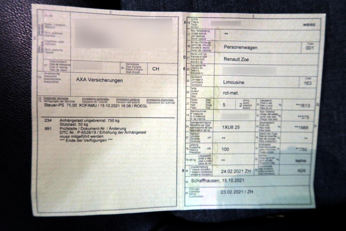 Zentrale Sonnenblende mit Schminkspiegel auf Fahrer- und Beifahrerseite, Heissgeprägter Kühlergrill, Media: Smartphone-Replikation Apple CarPlay und Android Auto, Lenkrad: Lenkrad beheizbar, Eco-Modus, Elektrische, variable Servolenkung, Sitze: Zwei höhenverstellbare Kopfstützen hinten, Assist: Tempowarnfunktion, Licht: Adaptives Fernlicht, Garantie: Renault Garantie 3 Jahre oder 100’000km (ab 1. Inv.), Assist: Berganfahrhilfe (Hill Start Assist), Regen- und Lichteinschaltsensor, Abgedunkelte Scheiben hinten, Sitze: Fahrer- und Beifahrersitz längsverstellbar mit einstellbarer Rückenlehne, Automatische Türverriegelung nach dem Anfahren, Sitze: Rucksitzbank 1/3 – 2/3 umklappbar, Assist: Toter Winkel-Assistent, Assist: Verkehrszeichenerkennung, Heckscheiben-Wisch-/Waschanlage, Assist: Aktiver Spurhalteassistent, Automatische Aktivierung der Warnblinkanlage bei Notbremsung, Licht: Voll-LED-Scheinwerfer mit C-Lichtsignatur, Innenrückspiegel automatisch abblendend, Media: 6 Lautsprecher, Elektrische Fensterheber vorne (mit Impulsfunktion und Einklemmschutz fahrerseitig) und hinten, Drittes Bremslicht hinten, Sitze: Integrierte Kopstützen vorne, Grün getönte Wärmeschutzverglasung, Assist: Rückfahrkamera, Media: Navigationsanzeige am 10″ TFT-Instrumentencluster, Elektrische Aussenspiegelverstellung, manuell einklappbar und beheizbar, Klima: Elektronische Klimaautomatik mit reversibler Wärmepumpe für minimierten Energieverbrauch, Airbag: Autoadaptiver Fahrer- und Beifahrerairbag, Pre-Conditioning System: – Programmierbare Standheizung bzw. -kühlung (Fahrzeug muss an Ladestation angesteckt sein und Batterie muss weitgehend aufgeladen sein, über MyRenault steuerbar), Automatisches Einschalten der Scheinwerfer und Scheibenwischer, Licht: Nebelscheinwerfer mit Kurvenlicht, Drei höhenverstellbare Kopfstützen hinten, Räder: Reifenreparatur-Kit, B Modus (Rekuperation) mit 2 Rekuperationsstufen, 3-Punkt Sicherheitsgurt vorne mit adaptivem Gurtstraffer, Gurtkraftbegrenzer und in der Höhe verstellbar, Dekor: Armaturenbrett und Innenharmonie Noir, Airbag: Frontairbag für Beifahrer manuell deaktivierbar, Lenkrad: Lenkrad in Höhe und Tiefe verstellbar, Assist: Fussgänger-Warnton Z.E. Voice, Räder: Reifendruckkontrollsystem, Schalthebelknauf in Leder, Renault-Chipkarte Keyless-Drive Hands-free mit Zentralverriegelung, Wegfahrsperre elektronisch, Aussenspiegel in Wagenfarbe, Heckscheibenheizung, Lenkrad: Lenkrad in Leder Premium, Assist: Tempomat mit Geschwindigkeitsbegrenzer, Polster: Sitzbezug Recytex / Lederoptik Noir (aus recycelten Materialien), Ladestecker vorne mit LED-Anzeige, Bi-modales Bremssystem mit 2-stufiger Rekuperation (einstellbar am Gangwahlhebel), Licht: Nebelschlussleuchte, Caméléon Ladegerät 1 und 3-phasig, Elektronischer Gangwahlhebel, ISOFIX-Kindersitzbefestigung auf dem Beifahrersitz und seitliche Sitze hinten, Airbag: Seitenairbags „Kopf” vorne und hinten, Assist: Einparkhilfe vorne und hinten, Aussenspiegel elektrisch einstell- und beheizbar mit Temperatursensor,asphärisch auf der Fahrerseite, Ladekabel Type 2 Mode 3 (6.5M), Garantie: Renault Garantie 12 Jahre Durchrostungsgarantie, Media: EASY LINK mit 9,3″ Display und TomTom-Navigationsfunktion,36 Monaten TomTom Services (Wetter, Live Verkehrssituation, halbjährliche Kartenupdates) sowie Google Suchfunktion, Assist: ESC mit Antriebsschlupfregelung (ASR) und Untersteuerungskontrolle (USC), Räder: 16″ Alufelgen „Elective” diamantpoliert, mit Michelin Primacy 4 Bereifung, B-Säulenverkleidung schwarz, Assist: Spurhaltewarner, Programmierbare Standheizung bzw. -kühlung via MyRenault App, Induktionsladegerät, Garantie: Renault Garantie 3 Jahre Lackgarantie (ab 1. Inv.), Licht: LED Heckleuchten mit dynamischem Blinker, 3-Punkt Sicherheitsgurt hinten mit Gurtkraftbegrenzer, Sitze: Beheizbare Vordersitze, Z.E. 50 Batterie (52 kWh)