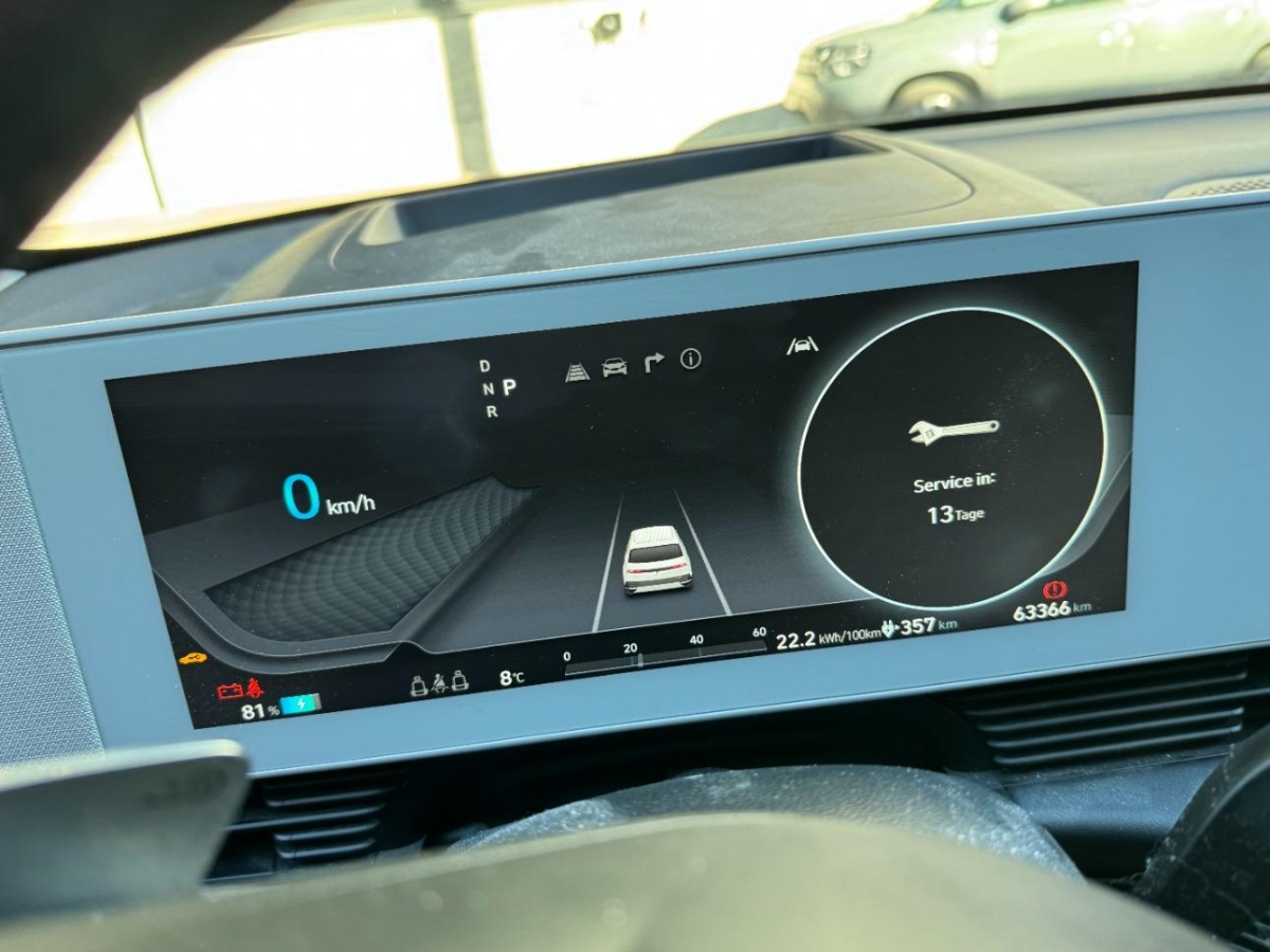 Batterieheizsystem, Ladegerät (On-Board Charger) dreiphasig bis zu 11 kW, Polster: Ledersitze, V2L-Technologie: 230V-Steckdosen innen und aussen (via Adapter), Licht: Fernlichtassistent, Sitze: Sitzheizung hinten, Anfahralarm Vorderfahrzeug, Garantie: Hochvoltbatterie: 8 Jahre / 160 000 km, Heckscheibenheizung, Elektronisches Stabilitätsprogramm ESP mit Multikollisionsbremse, Media: Navigationssystem mit 12.3″-Touchscreen, Assist: Spurfolgeassistent, Elektrisch verstell- und heizbare Aussenspiegel mit integrierten LED-Seitenblinkern, Verschiebbare Mittelkonsole, Media: 2x USB-Anschluss hinten, 44″ Augmented Reality Head-up Display, Media: Multi-Bluetooth mit Freisprecheinrichtung, Lenkrad: Wippen am Lenkrad für regeneratives Bremsen, Assist: Autobahn- und Stauassistent, Assist: Spurhalteassistent, Airbag: Deaktivierung Frontairbag Beifahrerseite, Automatisch abblendender Innenspiegel, Lenkrad: Lenkradheizung, Sitze: Elektrisch verstellbarer Fahrersitz, Mittelarmlehne hinten mit Getränkehalter, Licht: Lichtautomatik, Digitale Armaturentafel mit 12.3” TFT LCD Anzeige, Airbag: Center Airbag vorne, Assist: Aufmerksamkeitsassistent, Media: Premium Audiosystem Bose mit Verstärker, Subwoofer und Center-Speaker, Wärmepumpe, Media: 3x USB-Anschluss vorne, Media: Android Auto – und Apple CarPlay -Funktion, Assist: Tempomat mit Geschwindigkeitsbegrenzer, Wärmedämmende Frontscheibe, Elektrische Heckklappe, Licht: LED-Tagfahrlicht, Sitze: Lendenwirbelstütze Fahrersitz, pneumatisch einstellbar, ABS mit elektronischer Bremskraftverteilung EBD, 12 Volt-Steckdose im Laderaum, Sitze: Vordersitze mit Relax- und Memory-Funktion, Servolenkung, Media: Digitalradio DAB+, Media: Kabelloses Ladesystem für mobile Endgeräte, Ambientebeleuchtung, Assist: Aktiver Totwinkelassistent, ICCB-Ladekabel mit Typ 12-Stecker, Licht: LED-Leuchtband vorne, Räder: 19” Leichtmetallfelgen 235/55R19, 7,5x19J, Assist: Verkehrszeichenerkennung mit automatischer Geschwindigkeitsregelung, Räder: Reifendruck-Kontrollsystem High Line, Assist: Videoübertragung des toten Winkels bei Richtungsanzeige, Privacy Glass, abgedunkeltes Scheibenglas hinten (ab B-Säule), 12-Volt-Steckdose vorne, Gepäckraumrollo, Sitze: Sitzbelüftung vorne, Automatisch ausklappende Türgriffe, Aussenspiegel und Türgriffe in Wagenfarbe, Virtuelles Motorengeräusch VESS, Gepäcktrennnetz, Gepäckraumbeleuchtung vorne und hinten, Sonnenschutzrollo für Fenster 2. Sitzreihe, Assist: 360° Rundumsichtkamera, Sitze: Rücksitze getrennt abklappbar und elektrisch verschiebbar (60/40), ISOFIX Kindersitzvorrichtung, Allradantrieb permanent, Airbag: Front- und Seitenairbags vorne, Lenkrad: Lederlenkrad längs- und höhenverstellbar, Lackierung: Pearl-Lackierung Lucid Blue, Panorama-Dach, Sitze: Lendenwirbelstütze Beifahrersitz, pneumatisch einstellbar, Schnellladeanschluss CCS bis zu 350 kW, Garantie: Garantie 12 Jahre gegen Durchrostung, Licht: LED-Scheinwerfer im Pixel-Design, Licht: Nebelschlussleuchte, Klima: 2-Zonen-Klimaautomatik mit Anti-Beschlagsystem, Licht: LED-Rückleuchten im Pixel-Design, Sitze: Sitzheizung vorne, Media: 8 Lautsprecher, Räder: Reifenreparatur-Set, Haifischantenne, Assist: Rückfahrkamera mit digitalem Rückspiegel, Assist: Ausstiegsassistent, Assist: Regensensor, Assist: Elektrische Parkbremse mit Auto-Hold-Funktion, Assist: Notbremsassistent mit Fussgänger-/Fahrraderkennung und Abbiegefunktion, Vorbereitung für Anhängevorrichtung (ohne 13-polige Steckdose), Sitze: Höhenverstellbare Vordersitze, Fensterheber vorne mit Auf-/Abwärtsautomatik und Einklemmschutz, Wegfahrsperre elektronisch, Insassenalarm, Akustik-Verbundglas vorne und hinten, Assist: Berganfahrhilfe, Media: MapCare Lifetime – lebenslange Updates (exkl. Arbeitsleistung), Assist: Einparkhilfe vorne und hinten, Licht: Drittes Bremslicht, Assist: Querverkehrswarner hinten mit Bremsassistent, Media: Audio-Fernbedienung am Lenkrad, Airbag: Vorhangairbags vorne und hinten, Drive Mode Select, Akustik-Frontscheibe, Dreipunkt-Sicherheitsgurte auf allen Plätzen, vorne höhenverstellbar, Assist: Automatisches Notrufsystem eCall, Assist: Navigationsbasierter adaptiver Tempomat mit Stop&Go-Funktion, Getriebe: 1-Gang Getriebe, Alu-Pedale, Hochvoltbatterie mit 800 V-Technologie (400 V-kompatibel), Fensterheber vorne und hinten elektrisch, Schlüsselloses Zugangs- und Startsystem Smart Key, Media: Telematikdienst Bluelink und LIVE Services (3 Jahre gratis), Sitze: Elektrisch verstellbarer Beifahrersitz