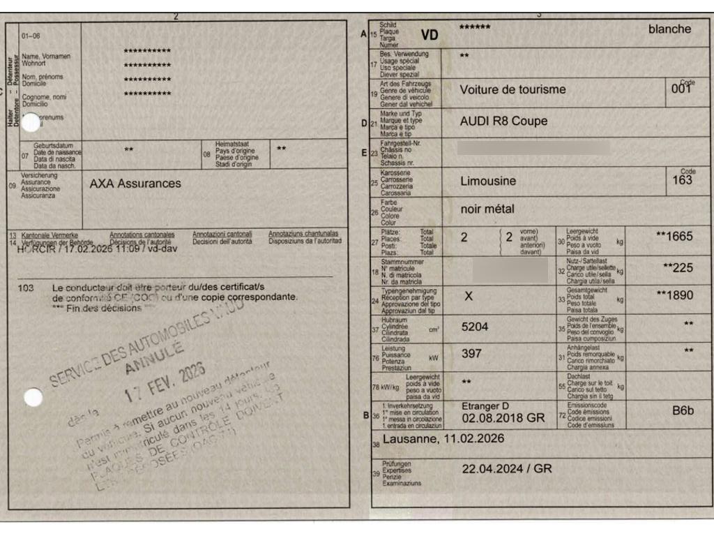 | Fahrzeugausweis | Vorhanden |