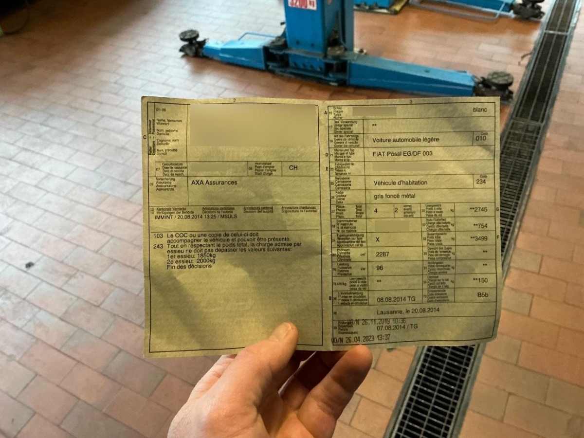 Weitere beschädigte Teile: Markise, rechte Schiebetüre, hinteres linkes Seitenfenster