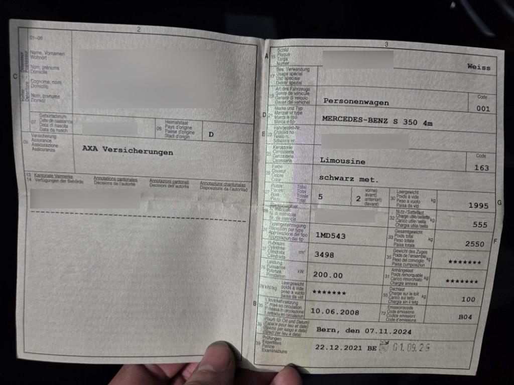 Sitze:Gurtstraffer vorne, Gepäcknetz im Beifahrerfussraum, PRE-SAFE Sicherheitssystem, Seitenairbags vorne und hinten, Tageskilometerzähler, Sitze: 3-Punkt-Sicherheitsgurte auf allen Plätzen, Katalysator geregelt, Holzapplikationen Calyptus Linea, Ablagefach in Armlehne hinten, Leuchtweitenregulierung von innen, Drehzahlmesser, Verbandskasten, Bremsbelagverschleiss, Parameterlenkung, Antriebsschlupfregelung (ASR), Aux-In Anschluss (im Handschuhfach) für externe Audiogeräte, Mittelarmlehne vorne klappbar, Allradantrieb permanent, Lenkrad:Multifunktionslenkrad mit Schaltwippen, Vordersitze mit elektrischer Höhen- und Lehnenverstellung, Leseleuchten hinten, Assist:ADAPTIVE BRAKE mit HOLD-Funktion und Berganfahrhilfe, Steckdose im Kofferraum, Sitze: Armlehne vorne mit Ablagefach, Getönte Scheiben, Seitenaufprall-Schutzsystem, Leseleuchten vorne, Elektrische Fensterheber vorne + hinten, Kofferraumfernentriegelung, Gurtstatusanzeige für Fondsitze, Licht:Nebelscheinwerfer, Klimatisierungsautomatik, Nichtraucherausführung, Reifendruckverlust-Warnsystem, Steckdose, Airbag: Window-Kopfairbags, 7-Stufen-Automat 7G-TRONIC, Kartentaschen an den Rückenlehnen, Scheibenwischer vorne mit Intervall, Stossstangen und Aussenspiegel in Wagenfarbe, Heckscheibenheizung, Bremsassistent (BAS), Licht: Drittes Bremslicht, Regensensor für Scheibenwischer vorne, Analog-Uhr, Zentralverriegelung mit Fernbedienung, Elektrisch verstellbares Lenkrad, Kreuzstützen für Vordersitze elektrisch verstellbar, Abblendlichtausschaltverzögerung 'Follow me home’, Licht: Nebelschlussleuchte, Beide Make up-Spiegel beleuchtet, Leichtmetallräder im 7-Speichen-Design 17J, Reiserechner, Polster: Stoff-Ausstattung, Gepäcknetz im Laderaum seitlich, Türgriffe aussen in Wagenfarbe, Wegfahrsperre elektronisch, Aussenspiegel rechts und links beheizbar und elektrisch verstell- / einklappbar mit Einstiegsbeleuchtung, AIRMATIC Luftfederung mit elektronisch geregeltem Dämpfungssystem, Licht:Adaptives Bremslicht, Lackierung: Uni-Lackierung, Airbag: Airbag Fahrer und Beifahrer, COMAND APS Radionavigationssystem mit DVD-Player, MP3 und Farbdisplay, PCMCIA-Slot, Antiblockiersystem (ABS), Höhenverstellbare Gurten vorne + hinten, Elektronische Parkbremse, NECK-PRO Kopfstützen vorne, Wartungsintervall-Anzeige, Make up-Spiegel hinten beleuchtet, Schliesshilfe für Heckklappe, Wassertemperaturanzeige, Lichtwarnsummer, Kopfstützen hinten abklappbar, Räder:Reifenreparatur-Set mit Kompressor, Scheibenwaschdüsen beheizt, Aschenbecher und Zigarrenanzünder im Fond links und rechts beleuchtet, Elektronisches Stabilitäts-Programm (ESP), Aussentemperaturanzeige, Lenkradeinstellung automatisch bei Ein- und Ausstieg, Assist:Tempomat, Licht:Fahrlichtautomatik, Niveauregulierung hinten und vorne, Fussraumbeleuchtung vorne und hinten, Brillenablage