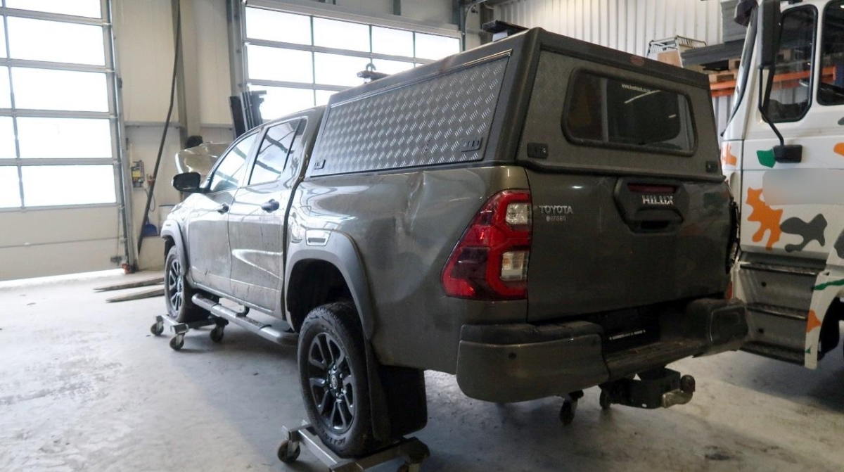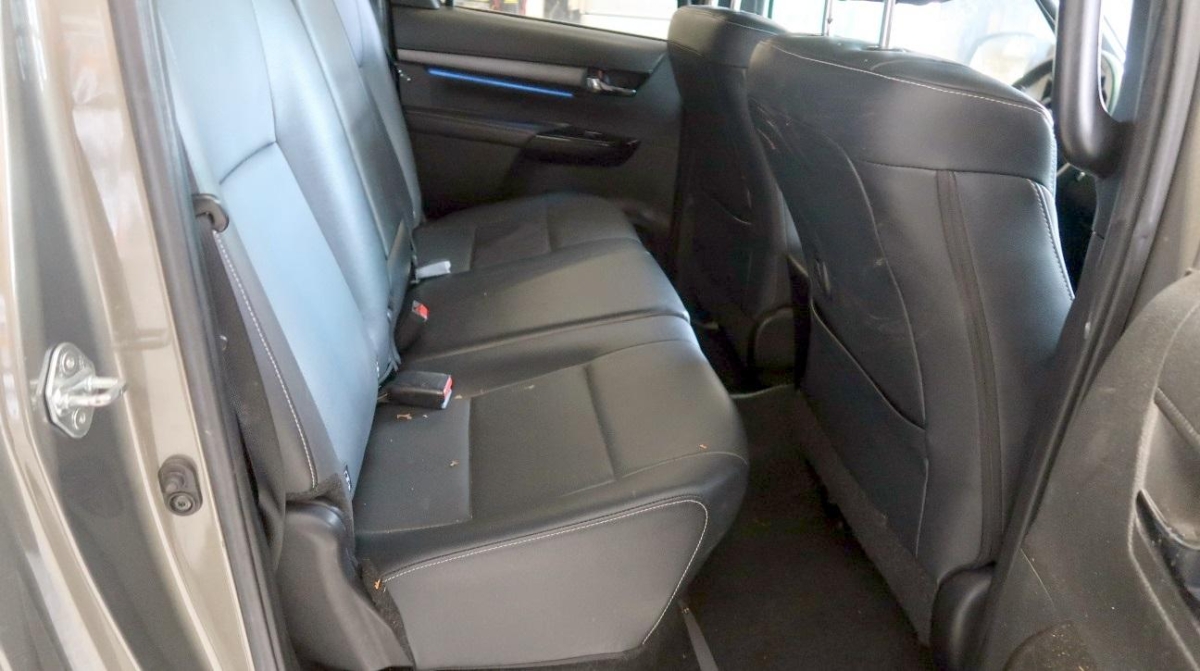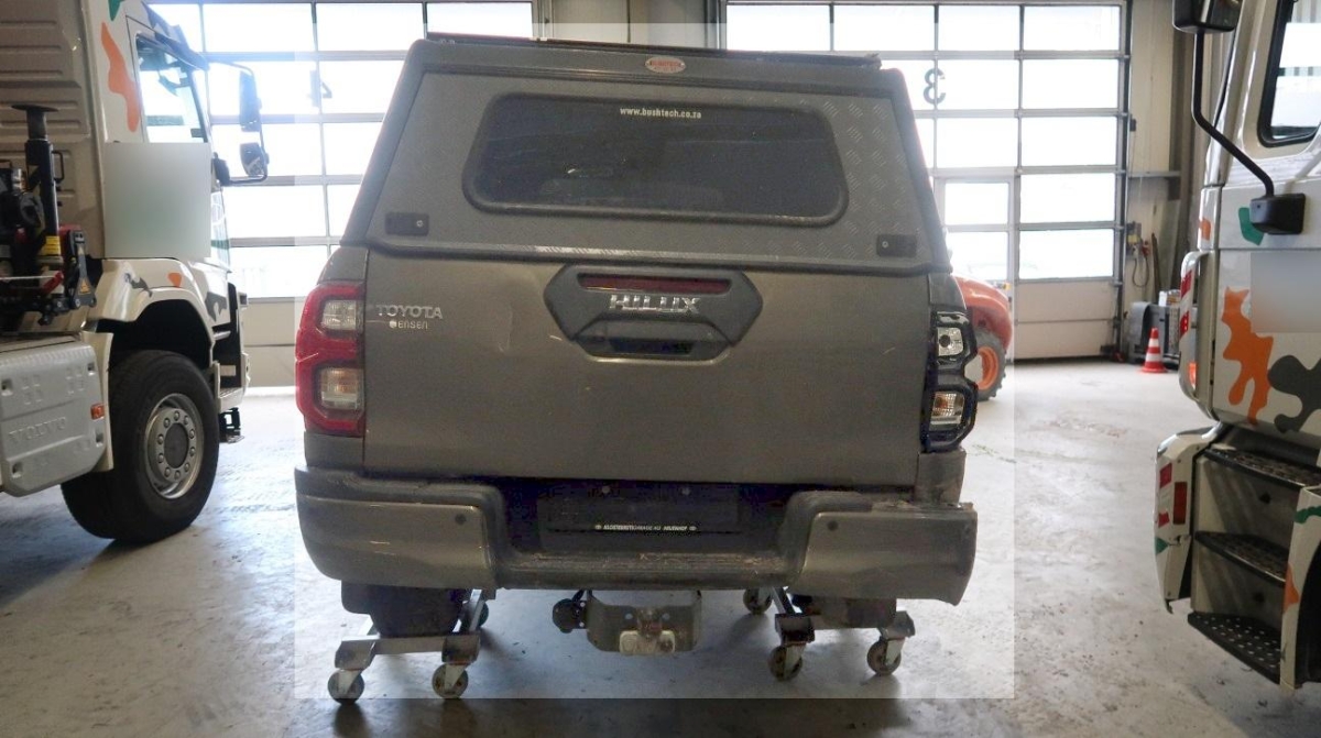 Lenkrad: Lenkrad manuell höhenverstellbar und längsverstellbar, Fahrwerk: Komfortfahrwerk, Räder: Reserverad, Cupholder vorne, Airbag: Window-Kopfairbag für Fahrer und Beifahrer, Assist: Einparksystem vorne und hinten, Airbag: Seitenairbag für Fahrer und Beifahrer, Lenkrad: Lenkradfernbedienung für Radio (Bluetooth), Media: Connected / Android Auto / Apple CarPlay, Ladefläche mit Schutzrahmen zur Rückseite der Fahrerkabine, Unterfahrschutz, Kotschutzlappen vorne und hinten, Wegfahrsperre elektronisch, Klima: Elektronische 2-Zonen-Klimaautomatik, Dachhimmel schwarz, Aussenspiegel in Chrom, Laderaumauskleidung tief, Kunststoff schwarz, Garantie: Toyota Assistance 3 Jahre / Kilometer Unbegrenzt, Heckscheibenheizung, Türgriffe aussen in schwarz, Steckdose 220V, Airbag: Airbag Fahrer und Beifahrer, Media: JBL-Soundsystem mit 9 Lautsprechern, Elektronisches Stabilitäts-Programm (VSC/VDC), Assist: Pre Collision System (PCS) mit Fussgänger- und Fahrraderkennung, Lenkrad: Lenkrad und Schalthebelgriff in Leder, Licht: Abblendlichtausschaltverzögerung 'Follow me home’, Limited Slip Differential (LSD) hinten, Kopfstützen vorne höhenverstellbar, Licht: Nebelscheinwerfer, Polster: Ledersitze perforiert, Sitze: Vordersitze heizbar, Innenspiegel abblendbar, Getriebe: 6-Stufen-Automat, Smart Entry-/Start-System, Licht: LED Scheinwerfer mit Leuchtweitenregulierung, Aussenspiegel rechts und links beheizt, elektrisch verstell- / und einklappbar, Airbag: Knie-Airbag für Fahrer, Elektrische Fensterheber vorne mit Komfortbetätigung und Einklemmschutz, Drehzahlmesser, Sitze: Kindersitzerkennung im Beifahrersitz, Assist: Berganfahrhilfe (Hill Assist Control – HAC), Sonnenblenden auf Fahrer- und Beifahrerseite, Steckdose 12V, ISOFIX-Befestigungspunkte für Kindersitz an den äusseren Rücksitzen, Trittbretter schwarz, Licht: LED-Tagfahrlicht, Frontgrill Umrandung in Chrom, Höhenverstellbare Gurten vorne, Media: Toyota Touch 8″, Kotflügelverbreiterung, Stossstange vorne in Wagenfarbe, Servolenkung, Handschuhfach, Fahrwerk: Allradantrieb elektrisch zuschaltbar mit Differenzialsperre hinten und Geländeuntersetzung, Leuchtweitenregulierung von innen, Scheiben abgedunkelt, Toyota Garantie: 3 Jahre oder 100’000 km (ab 1. Inv.), Innenraumbeleuchtung, Sitze: Fahrersitz elektrisch verstellbar, Assist: 360 – Panoramakamera, Räder: 18″ Leichtmetallfelgen 265/60/R18, Alarmanlage, Bodenteppiche, Assist: Adaptiver Tempomat (ACC), Zentralverriegelung mit Fernbedienung und Klappschlüssel, Assist: Spurwechselassistent, Ladefläche mit Befestigungshaken, aussenliegend, 12-Volt-Steckdose vorne, Gurtstraffer vorne, Lackierung: Uni-Lackierung, Scheibenwaschdüsen vorne beheizt, Antiblockiersystem (ABS), Licht: Nebelschlussleuchte, Partikelfilter und Oxydationskatalysator, Kühlergrill schwarz matt, Media: Navigationssystem Toyota Touch 2 Go inkl. 3 Jahre gratis Kartenupdate, Assist: Verkehrsschild-Erkennungssystem, Assist: Anhänger Stabilisierungkontrolle TSA