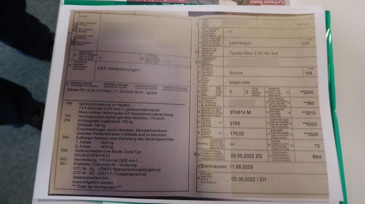 Fahrzeugausweis Vorhanden