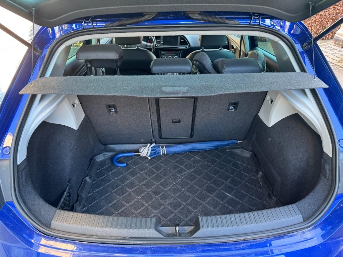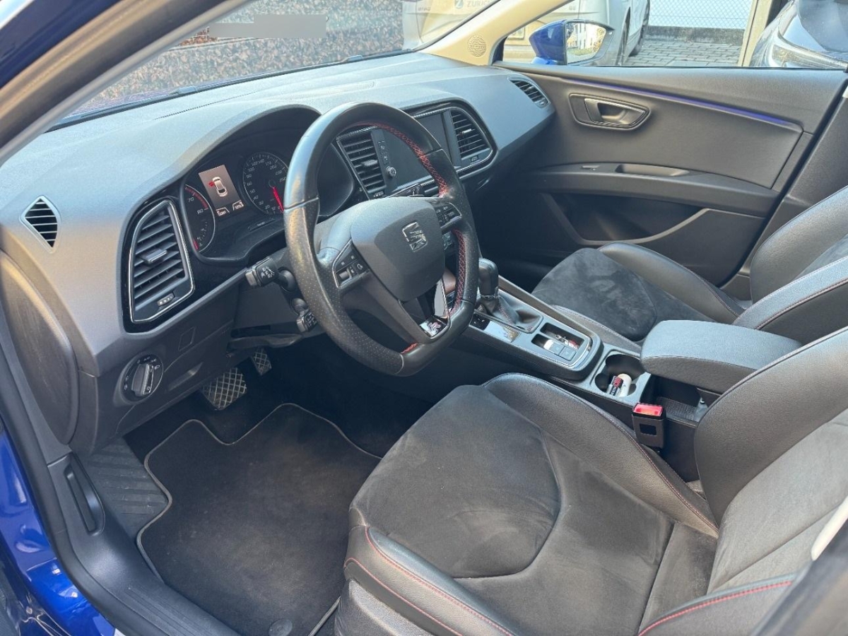 Auspuffanlage mit 2 Endrohren, Make up-Spiegel beleuchtet für Fahrer, Lenkrad: Ledermultifunktionslenkrad, Airbag: Window-Kopfairbags vorne und hinten, Gurte Höhenverstellbar vorne, Make up-Spiegel rechts, Licht: LED Heckleuchten, Licht: Halogenscheinwerfer, Bordcomputer und Display, Servolenkung, Wärmeschutzverglasung, Lenkrad längs- und höhenverstellbar, Sportsitze vorne mit Lendenwirbelstütze, Airbag: Beifahrerairbag deaktivierbar, 3-Punkt-Sicherheitsgurte auf allen Plätzen, Schalthebelknauf in Leder, ABS, EBD elektronische Bremskraftverteilung, Media: Lautsprecher 8, Wegfahrsperre elektronisch, Media: DAB+ (Digital Audio Broadcasting), Bremsenergie-Rückgewinnung, Elektrische Fensterheber vorne mit Komfortbetätigung und Einklemmschutz, Elektronische Traktionskontrolle (ASR/TCS), Heckscheibenheizung, Innenleuchten LED, Elektronische Parkbremse, Licht: Coming-home-Funktion, Licht: LED-Tagfahrlicht, Pollenfilter (Staubfilter), Media: Mobiltelefon Freisprecheinrichtung Bluetooth, 12-Volt-Steckdose vorne, Sitze: Vordersitze höhenverstellbar, Teppichfussmatten vorne und hinten, Gurtstraffer mit Gurtkraftbegrenzer vorne, Assist: Tempomat, Gurtkontrolle, Leuchtweitenregulierung von innen, Doppelscheinwerfer, Fahrersitz mit Lendenwirbelstütze, Kofferraumbeleuchtung, Assist: Multikollisionsbremse, ISOFIX Kindersitzvorrichtung, Airbag: Fahrer und Beifahrer Airbag, Elektrische Fensterheber hinten, Aussentemperaturanzeige, Aussenspiegel rechts und links beheizt, elektrisch verstell-/ und einklappbar, Airbag: Seitenairbag für Fahrer und Beifahrer, Licht: Bremslicht Drittes, Einstiegsleisten in Aluminium, Zentralverriegelung mit Fernbedienung, Getriebe: 7-Gang-Sequentielle-Getriebe mit Automatikfunktion, XDS inkl. Berganfahrassistent, Klima: 2-Zonen-Klimaautomatik, Kopfstützen vorne höhenverstellbar, Schublade unter Fahrersitz, Assist: Einparkhilfe hinten, Seitenaufprall-Schutzsystem, Heckscheiben-Wisch-Waschanlage mit Intervall, 5” Farbdisplay Touchscreen, Reifenpannen-Set (Tire Kit), Katalysator geregelt, Rücksitze geteilt abklappbar, Räder: 4 Leichtmetallfelgen 17J mit Pneu, SEAT Media System Color, Make up-Spiegel links, Tankdeckel-Entriegelung von innen, Abgedunkeltes Scheibenglas (ab B-Säule), Media: USB-Anschluss, Innenspiegel automatisch abblendbar, Aussenspiegel mit LED Blinker, Fahrwerk: Sportfahrwerk, Handschuhfach Beleuchtet, Licht: LED Nebelscheinwerfer, Aussenspiegel und Türgriffe in Wagenfarbe, Kopfstützen hinten (3), Polster: Stoff-Ausstattung, Assist: Müdigkeitserkennung, Stop/Start-Technologie, Licht: Nebelschlussleuchte, Licht- und Regensensor, Airbag: Knie-Airbag für Fahrer