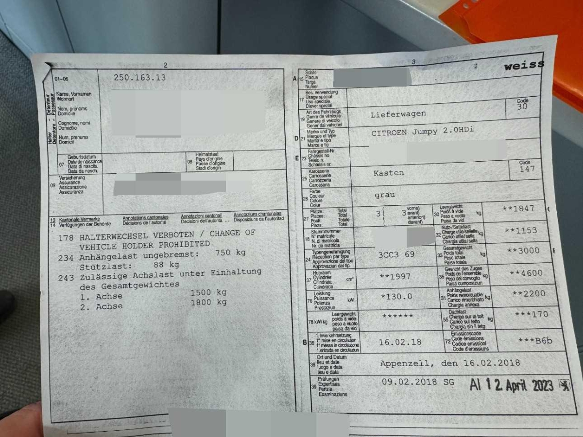 Fahrzeugausweis Vorhanden