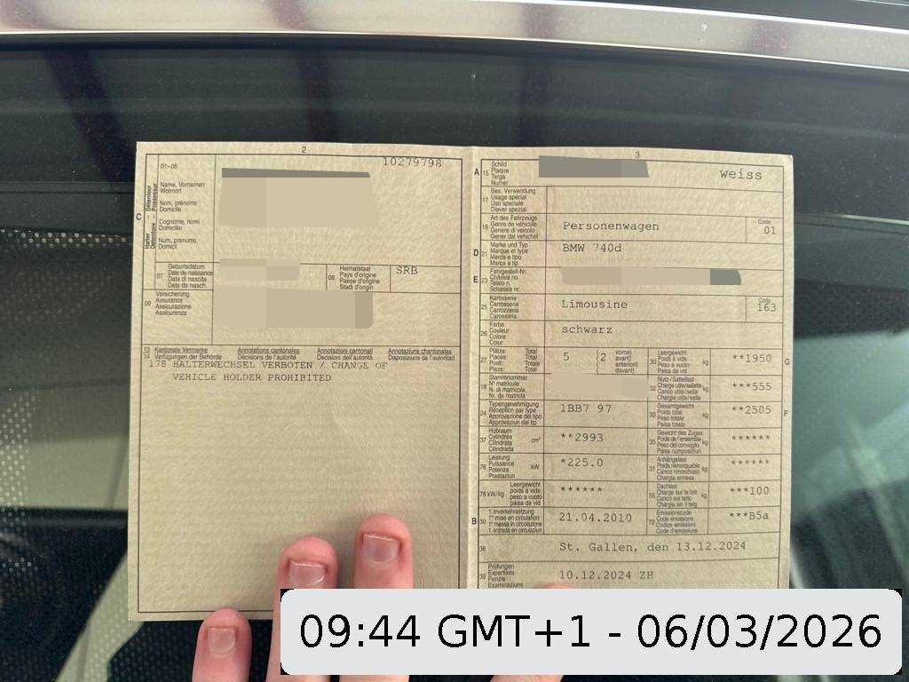 Gepäcknetz im Beifahrerfussraum, Radio BMW Professional CD/MP3, Assist: Auto-Hold-Funktion, Assist: Tempomat mit Bremsfunktion, Servotronic, Getriebe: 6-Stufen-Automat Steptronic, Park Distance Control vorne und hinten, Antennen-Diversity, Wegfahrsperre elektronisch, Window-Kopfairbags, HiFi Lautsprechersystem, Automatische Umluftkontrolle, Innen- und Aussenspiegel automatisch abblendend, Lackierung: Uni-Lackierung, ISOFIX-Befestigungspunkte für Kindersitz an den äusseren Rücksitzen, Start-/Stop-Knopf, Bi-Xenon-Scheinwerfer inkl. Reinigungsanlage, Befestigungsösen im Laderaum, Assist: Cornering Brake Control (CBC), Dynamische Stabilitätskontrolle (DSC), Abblendlichtausschaltverzögerung 'Follow me home’, Weisse Blinkleuchten, 3-Punkt-Sicherheitsgurte auf allen Plätzen, Scheibenwischer vorne mit Intervall, 2 Steckdosen in der Mittelkonsole (vorne und hinten), Ambientebeleuchtung, Reifen mit Notlaufeigenschaft, Elektronische Parkbremse, Leseleuchten vorne, Leichtmetallfelgen im Doppelspeichen- Design 234, VA 8Jx18 mit Pneus, Check-Control-System, Wartungsintervall-Anzeige, Zentralverriegelung mit Fernbedienung, Sitzbelegungserkennung für Beifahrersitz, Lenkrad: Multifunktionslenkrad, Antiblockiersystem (ABS), Holzapplikationen Fineline hochglänzend, 12-Volt-Steckdose hinten, Assist: Dynamische Traktionskontrolle (DTC), 12-Volt-Steckdose vorne, Fahrgastraumbodenbeleuchtung, Nichtraucherausführung, Aussentemperaturanzeige, Lichtwarnsummer, Wassertemperaturanzeige, Aktive Kopfstützen, Cupholder vorne und hinten, Partikelfilter und Oxydationskatalysator, Ablagefach in Armlehne hinten, Schliesshilfe für Heckklappe, Bremsassistent (BAS), Stossstangen und Aussenspiegel in Wagenfarbe, Drittes Bremslicht, AUX Anschluss in der Mittelarmlehne vorne, Nebelscheinwerfer, Airbag: Seitenairbag für Fahrer und Beifahrer, Leder-Ausstattung 'Dakota’ inkl. Sitzheizung, Licht: Leuchtweitenregulierung automatisch, Tageskilometerzähler, Aussenspiegel rechts und links beheizt und elektrisch verstellbar, asphärisch gewölbtes Spiegelglas, Armlehne vorne mit Ablagefach, Elektrisch verstellbares Lenkrad, Seitenaufprall-Schutzsystem, Bordcomputer, Airbag: Airbag Fahrer und Beifahrer, Aktivkohlefilter (Geruchsfilter), Vordersitze elektrisch verstellbar mit Memory, Grün getönte Scheiben, Klimatisierungsautomatik, Info-Display, Beleuchtetes und abschliessbares Handschuhfach, Licht: Nebelschlussleuchte, Kartentaschen an den Rückenlehnen, Sonnenschutzrollo für Heckscheibe elektrisch, Elektrische Fensterheber vorne + hinten, Dynamische Dämpfer Control, Verbandskasten, Veloursfussmatten vorne und hinten, Scheibenwischer vorne mit Regensensor und automatischem Einschalten der Abblendlichter, Heckscheibenheizung, Scheibenwaschdüsen beheizt, Abschliessbare Radschrauben, Beide Make up-Spiegel beleuchtet, Gurtstraffer vorne und hinten, Bremsbelag-Verschleissanzeige, Diebstahlwarnanlage mit Fernbedienung