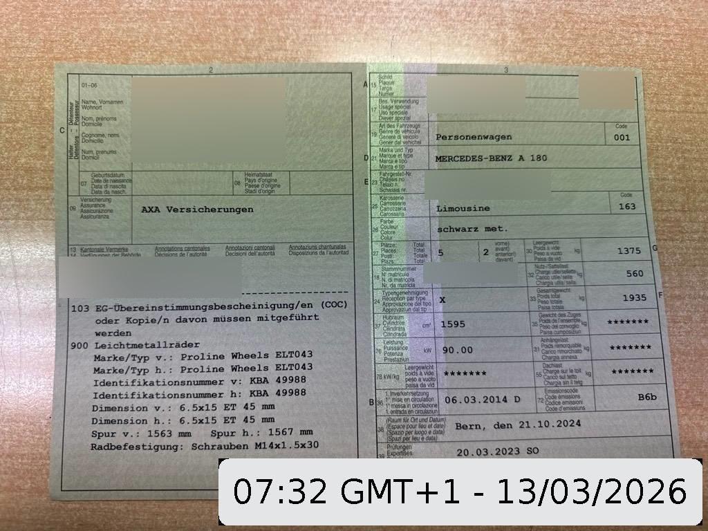 Fahrzeugausweis Vorhanden