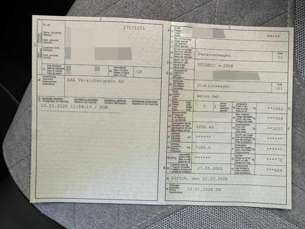 Assist: Geschwindigkeitsregler/-begrenzer, LED-Innenbeleuchtung: taktile Deckenleuchte vorne (1 Lampe und 2 Leseleuchten) + 2 taktile Leseleuchten hinten, Sonnenblende, Fussraum + Beleuchtung Kofferraum, Beleuchtung Kofferraum mit Glühlampe, Kofferraumschutzleiste Métallure, Zierleiste für Seitenfenster Schwarz glänzend, Edelstahltürschwellen vorn mit schwarzer Markierung PEUGEOT, Sicherheitsgurte vorne mit pyrotechnischer Haspel, Kraftbegrenzern und Sicherheitsgurtsensor, Innenraum und Dachhimmel Schwarz, Seitliche Türschütze Schwarz genarbt mit Einsätze Métallure, Radkästen Schwarz Mat, Airbag: Window-Kopfairbags, Hohe Konsole mit integrierter Armlehne, Assist: Totwinkel-Assistent, Airbag: Fahrer und Beifahrer, Zierleiste unterhalb der Seitenfenster in glänzendem Schwarz mit Siebdruck, Heckscheibenheizung, Aussenspiegel elektrisch anklappbar mit Zugangsbeleuchtung, Sitze: Fahrersitz höhenverstellbar, Haltegriffe 2 vorne und 2 hinten, Türgriffe in Wagenfarbe, Sitze: Beifahrersitz höhenverstellbar, Licht: PEUGEOT Full LED Technology Scheinwerfer mit Drei-Krallen-Signatur, LED-Richtungsanzeiger, Rahmenloser lichtempfindlicher Innenspiegel, Assist: ABS, EBD, elektronische Bremskraftverteilung, Aussenspiegel rechts und links beheizbar und elektrisch verstellbar, Media: PEUGEOT Connect SOS & Assistance – Automatischer oder manueller Notruf über SOS-Taste und direkte Verbindung mit PEUGEOT Assistance (täglich rund um die Uhr), Media: 6 Lautsprecher (2 tweeters und 2 woofers vorne u. 2 hinten), Media: Vernetzte 3D-Navigation mit 10-Zoll-Touchscreen und 4-USB-Anschlüsse (2 vorne und 2 hinten) – Europäisches Kartenmaterial mit automatischer, dauerhafterVerbindung zu den vernetzten Navigationsdiensten TomTom® (TomTom® Traffic, Praftstoffpreise, Parkplätze, Wetterbericht, lokale Suche) mit DAB-Funktion (digitales Radio) dank in Fahrzeug integrierter SIM-Karte (3-Jahres-Abonnement inklusive), Zentralverriegelung mit Fernbedienung und automatischer Türverriegelung, Licht: Nebelschlussleuchte, e-Automatikschalter „e-toggle”, Wegfahrsperre elektronisch, Lenkrad: Lenkrad längs- und höhenverstellbar, Assist: Visuelle und akustische Einparkhilfe hinten, Dachkantenspoiler in glänzendem Schwarz, Elektronisches Stabilitäts-Programm (ESP), 3-Punkt-Sicherheitsgurte auf allen Plätzen, Lackierung: Metallic-Lackierung Orange Fusion, Pausenwarner, Media: PEUGEOT Connect SOS & Assistance, Katana mit Markierung „e”, Fussmatten vorn und hinten mit Ziernähte Grün Adamite, Dynamische Stabilitätskontrolle (DSC), Heckscheiben-Wisch-/Waschanlage, Lenkrad: Kompaktlenkrad aus genarbtem Leder mit grünen Ziernähten, verchromtem Löwen, GT-Schriftzug und integrierten Bedienungen am Lenkrad, Kartentaschen an den Rückenlehnen, Fahrerpedale aus Aluminium, Bordcomputer, Airbag: Seitenairbag für Fahrer und Beifahrer, Dekor: Armaturenbrett Slush mit Ziernähte, Fronttürverkleidungen mit Dekor in Carbonoptik und anpassbarer 8-Farben-LED-Lichtring, Garantie: 3 Jahre Garantie auf Teile, Arbeit und Peugeot Assistance – 3 Jahre / 80’000 km Garantie auf Teile, Arbeit und Peugeot Assistenz (je nachdem, welche Bedingung zuerst eintritt) – ausser Verschleissteile – 12 Jahre Korrosionsschutzgarantie – 3 Jahre Lackgarantie, Aussenspiegelgehäuse mit LED-Seitenverstärker, Servolenkung geschwindigkeitsabhängig, Aussenbeleuchtung für Empfang und Begleitung, 3 Isofix-Befestigungen nach ISOFIX-Standard (1 vorn und 2 hinten), Klima: Automatische Einzonen-Klimaanlage, Schlüsselloses Zugangs- und Startsystem Proximity, Sitze: Umklappbare Rücksitzbank 1/3 – 2/3, Räder: Indirekte Reifenluftdruckkontrolle, Polster: Alcantara-/Kunstleder-Ausstattung, Elektrische Fensterheber vorn und hinten mit Impulssteuerung und Einklemmschutz, Licht: LED-Nebelscheinwerfer mit Cornering-Funktion, Media: Peugeot i-Cockpit mit digitalem 3D-Head-up Display, Räder: 18-Zoll-Alufelgen BUND glanzgedreht, zweifarbig Schwarz Onyx und Hochglanzlack – Radkappen Schwarz Onyx – Schrauben Schwarz Onyx – Einsätze Grau Storm matt, Assist: Notbremsassistent, Dachreling in glänzendem Schwarz, Assist: Elektrische Parkbremse mit Berganfahrhilfe und automatischer Sperre, Dach Black Diamond, Aussenspiegelgehäuse in glänzendem Schwarz, Licht: LED-Heckleuchten mit Drei-Krallen-Signatur, Assist: Akustischer Fussgängerwarner, Seitlichen Sicherheitsgurte hinten miit pyrotechnischer Haspel, Kraftbegrenzern und Sicherheitsgurtsensor und zentrale 3-Punkte-Sicherheitsgurte hinten mit Sicherheitsgurtsensor, Kofferraumboden mit zwei Positionen, On-Boad Aufladegerät 11 kW dreiphasig, Akustische Windschutzscheibe, Energieladeklappe auf dem linken Heckflügel, mit Ladezustandsanzeigeleuchte, Höhenverstellbare Kopfstützen an Fahrer- und Beifahrersitz sowie Rücksitzen, Befestigung für zwei Kindersitze nach ISOFIX-Standard auf den Rücksitzen, inklusive Top Tether, Seitenscheiben in Reihe 2 und Heckscheibe stärker getönt, Getriebe: Automatik-Elektroantrieb mit fester Getriebeüberstezung, Automatisches Einschalten der Frontscheibenwischer, Antriebsschlupfregelung (ASR), Media: Bluetooth-Funktion & Mirror Screen (Apple CarPlay/Android Auto/ MirrorLink), Türgriffe innen verchromt, Mode 2-Ladekabel (Typ 2/J), Licht: Drittes Bremslicht, Garantie: Garantie auf die Batterie für 8 Jahre / 160 000 Km für 70% der Ladekapazität (e-2008), Räder: Reifenreparaturset, Automatische Türverriegelung während der Fahrt, Kühlergrill mit oberem Grill Schwarz genarbt und horizontaler Markierung in der Wagenfarbe, unterem Grill mit Dekor Métallure, Zierleiste oberhalb des Kühlergrills in der Wagenfarbe, Dichroitisches Löwen-Emblem, Automatisches Einschalten der Abblendlichter, LED-Ambientebeleuchtung am Armaturenbrett und an der Türverkleidung, einstellbar in 8 Farben