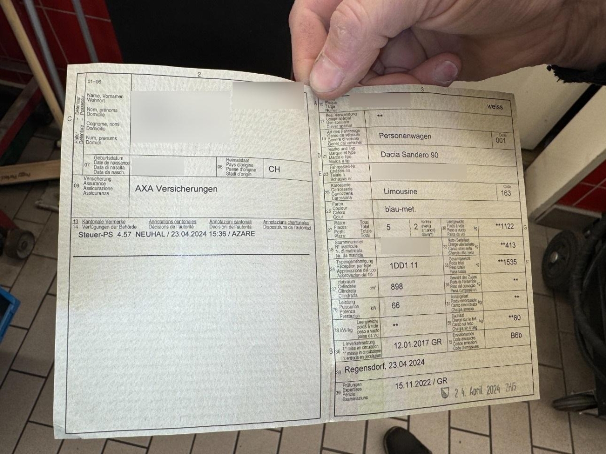 | Fahrzeugausweis | Vorhanden |