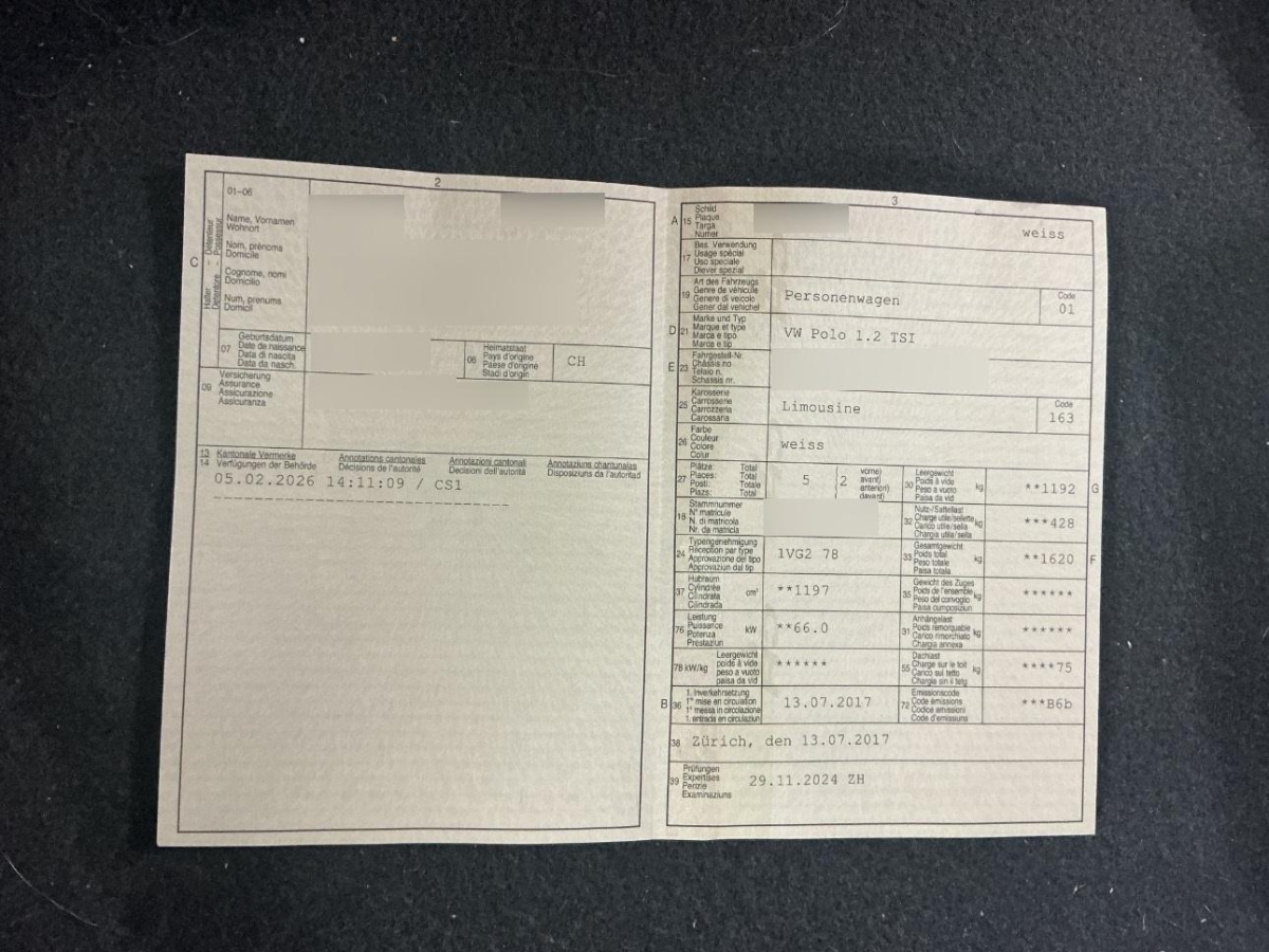 Fahrzeugausweis Vorhanden