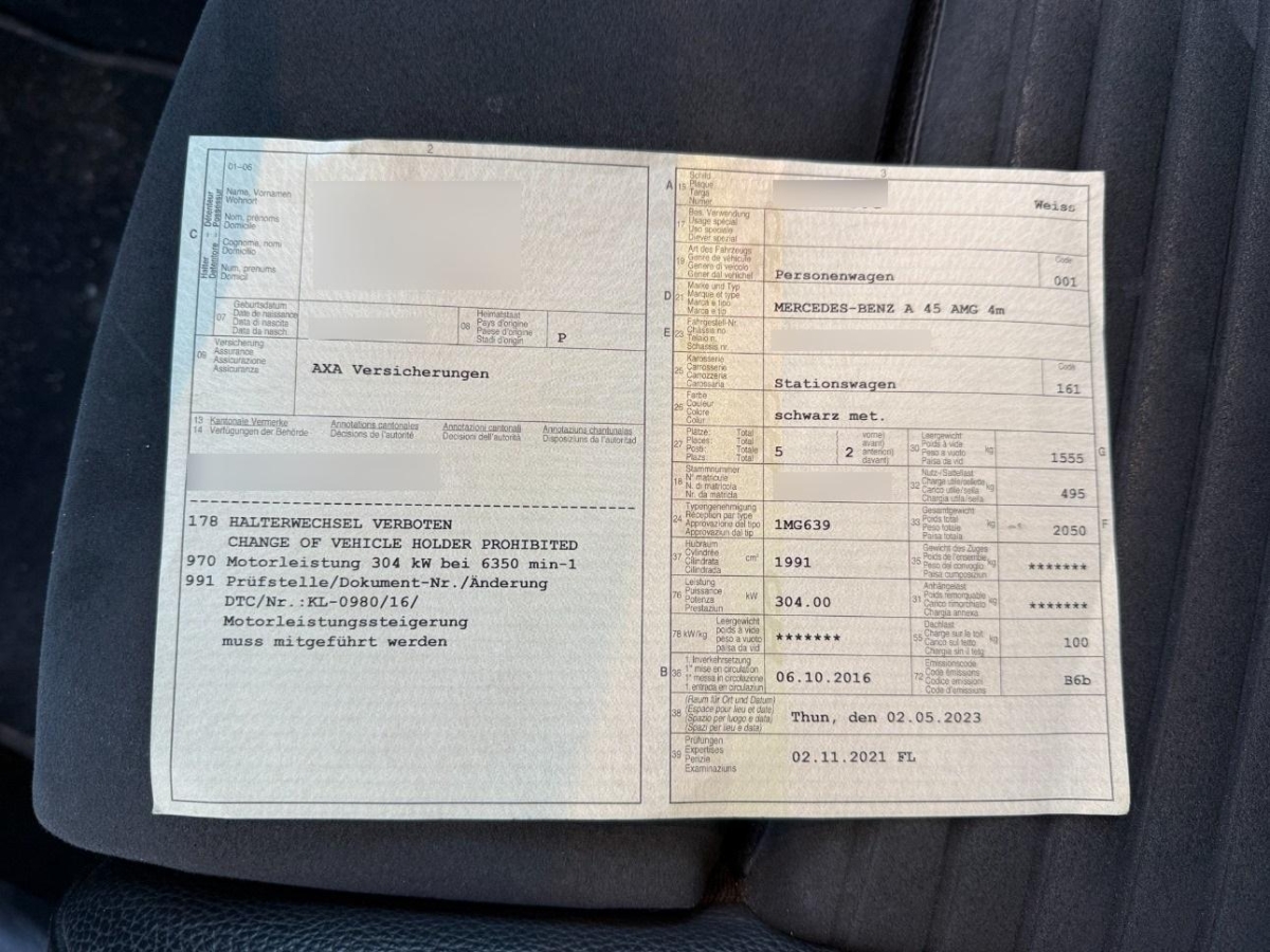 Polster:Polsterung Ledernachbildung ARTICO / Microfaser DINAMICA, Licht: Nebelschlussleuchte, AMG Leichtmetallräder 5-Doppelspeichen- Design 18J, Crashaktive Notbeleuchtung, Assist:Reifendruck-Kontrollanzeige, Sitze: 3-Punkt-Sicherheitsgurte auf allen Plätzen, Sitze: Rücksitzlehne geteilt abklappbar, Heckscheibenheizung, Stossstangen in Wagenfarbe, Antiblockiersystem (ABS), Gurtkontrolle, Höhenverstellbare Gurten vorne, Assist: ATTENTION ASSIST (Aufmerksamkeitsassistent), Reiserechner, Bremsbelagverschleiss, Antriebsschlupfregelung (ASR), Getriebe: Sequentielles 7-Gang-Getriebe mit Automatikfunktion, Assist: Tempomat mit variabler Geschwindigkeitsbegrenzung SPEEDTRONIC, Wegfahrsperre elektronisch, Steckdose 12-Volt- vorne, Airbag: Window-Kopfairbags, Reifenreparatur-Set (Tire Fit), Bi-Xenon-Scheinwerfer inkl. Reinigungsanlage, USB-Anschluss, 12-Volt-Steckdose hinten, Allradantrieb permanent, Geräusch- und Wärmeschutzverglasung, Türgriffe aussen in Wagenfarbe, Sicherheitsgurte, rot, Licht: LED High Performance-Scheinwerfer, Dekor: Bordkantenzierstab in Chrom, Aussenspiegel in Wagenfarbe, AMG Sport-Abgasanlage mit zwei verchromten Endrohrblenden, DYNAMIC SELECT Schalter, AMG Einstiegleisten, Kontrollanzeige für Lampenausfall, Armauflage vorne, verschiebbar, Frontscheibe Verbundglas, Lenkrad:Multifunktions-Sportlenkrad in Leder,unten abgeflacht, Licht: Fahrlichtassistent (automatisches Fahrlicht), AMG Kombiinstrument, Tagfahrlicht, AMG Veloursfussmatten, AMG DRIVE UNIT, Aussentemperaturanzeige, Licht:Adaptives Bremslicht, Sitze:Gurtstraffer vorne, Assist:ADAPTIVE BRAKE mit HOLD-Funktion und Berganfahrhilfe, Licht: LED Blinker im Aussenspiegel, Drittes Bremslicht LED, Katalysator geregelt, Dekor: Zierelemente Carbonoptik, Heckscheibenwischer, Wartungsintervall-Anzeige, Befestigungsösen im Laderaum, Sportpedalanlage, Assist:Kollisionswarnung, Fahrwerk:AMG Sport-Parameterlenkung, Controller auf Mittelkonsole, Klimaanlage manuell, mit Pollenfilter, Dekor:designo Sicherheitsgurte, farbig, Paket: AMG Styling-Paket, Crash-Sensor, Lackierung: Uni-Lackierung, Make up-Spiegel links, Ablagen in den Türen, Bremsscheiben vorne gelocht, Airbag: Seitenairbag für Fahrer und Beifahrer, Beleuchtetes Handschuhfach, Fahrwerk:AMG Hochleistungs-Bremsanlage, Elektrische Fensterheber vorne + hinten, Dekor: Dachhimmel schwarz, Multifunktionsanzeige, Sitze:Sitzkomfort-Paket, Elektronisches Stabilitäts-Programm (ESP), Fahrwerk:AMG Sportfahrwerk, Lenkrad längs- und höhenverstellbar, AMG Kühlergrill, Media:Audio 20 USB Multimediasystem, 17,78cm- Farbdisplay, Doppeltuner, 2 USB, zentra- les Bedienelement, Bluetooth, SD-Karten- anschluss, Bremsassistent (BAS), Airbag: Knie-Airbag für Fahrer, Kindersicherung an den hinteren Türen, Dekor:Türmittelfelder in Mikrofaser DINAMICA, Fahrersitz höhenverstellbar, Interieur mit roten Kontrastziernähten, Airbag: Airbag Fahrer und Beifahrer, Scheibenwischer vorne mit Intervall, Nichtraucherausführung, Make up-Spiegel rechts, Zentralverriegelung mit Fernbedienung und automatischer Türverriegelung