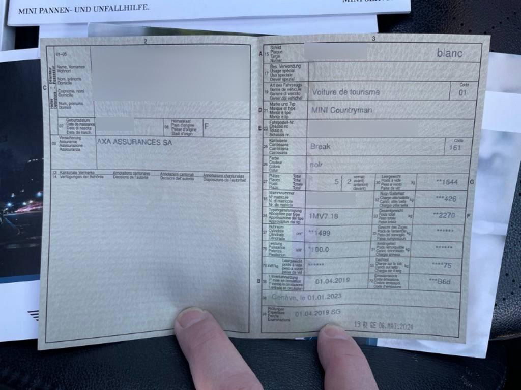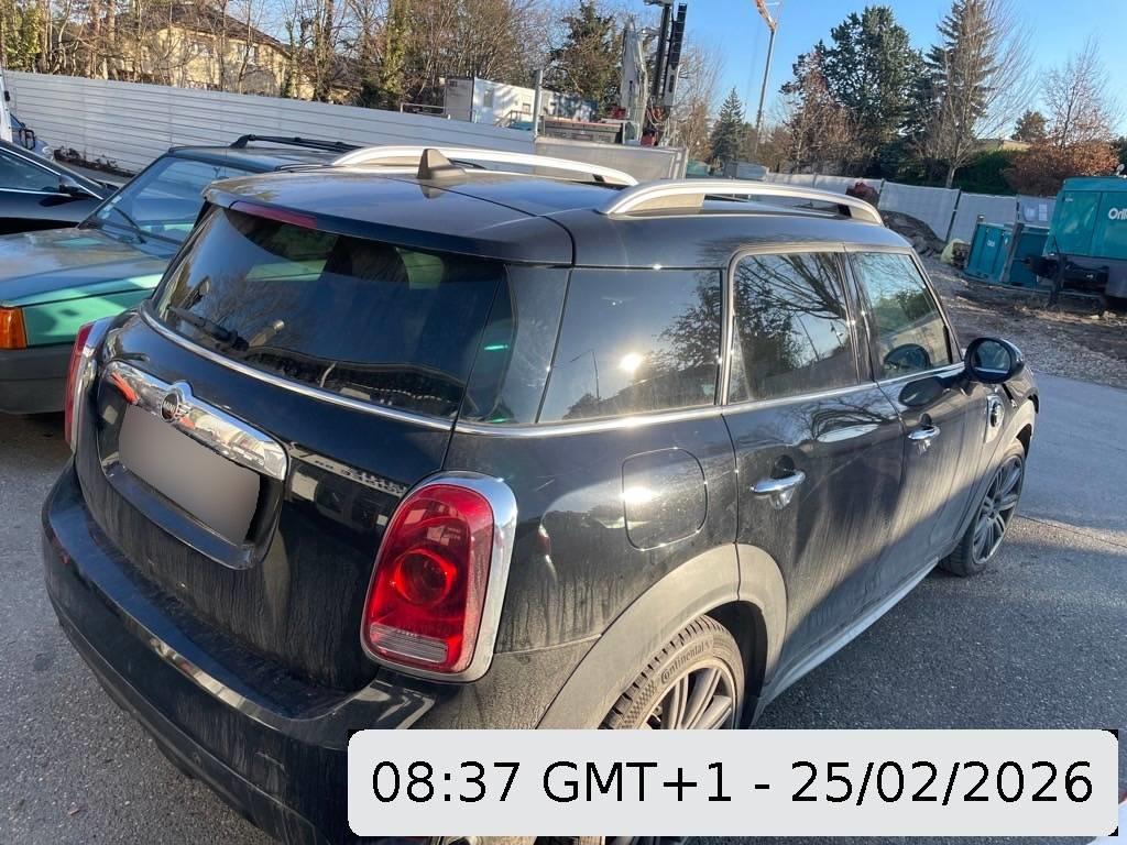 Getriebe: 6-Stufen-Automat sequentiell, Ablagenpaket, Laderaumabdeckung, Licht: Weisse Blinkleuchten Zusatzblinkleuchten, in Seitenwand vorne in Weiss, Airbag: Seitenairbag für Fahrer und Beifahrer, Türgriffe innen verchromt, MINI Driving Modes, Start-/Stop-Knopf, Dekor: Colour Line Carbon Black, Elektronische Parkbremse, Wegfahrsperre elektronisch, Battery Certificate, Dekor: Interieuroberflächen Hazy Grey, Cornering Brake Control (CBC), Lackierung: Uni-Lackierung, Performance Control, Ladekabel, Zentralverriegelung mit Fernbedienung, Leichtmetallräder Light Spoke, Grau 17J, Gurtstraffer vorne, Lenkrad: Lenkrad längs- und höhenverstellbar, Wärmeschutzverglasung, Airbag: Airbag Fahrer und Beifahrer, Veloursfussmatten vorne und hinten, Media: Bluetooth Freisprecheinrichtung, Airbag Beifahrer deaktivierbar, Einstiegsschienen, Licht: Nebelschlussleuchte, Crash-Sensor, Lenkrad: Sport-Lederlenkrad, Dachhimmel in grau, Media: Radio MINI Visual Boost, Getönte Scheiben, Polster: Stoff-Ausstattung, Aussenspiegel in Wagenfarbe, Heckscheibenheizung, Innenraumbeleuchtung, Scheibenwischer vorne mit Regensensor und automatischem Einschalten der Abblendlichter, Elektrische Fensterheber vorne + hinten, Verbandskasten, Sitze: Rücksitzlehne geteilt abklappbar, Nebelscheinwerfer, Getriebe: Allradantrieb permanent, Dynamische Bremsleuchten, Steckdose 12V, Servotronic, Intelligenter Notruf, Licht: Tagfahrlicht, Drehzahlmesser, Media: DAB+ (Digital Audio Broadcasting), Start/Stop-Funktion, Befestigungsösen im Laderaum, Elektronischer Bremskraftverteilung EBD, Antiblockiersystem (ABS), Bremsassistent (BAS), Ablagefach, Türgriffe aussen verchromt, Dynamische Traktionskontrolle (DTC), Airbag: Window-Kopfairbags, Cupholder, Sonnenblende Fahrer und Beifahrerseite mit Spiegel, Handschuhfach, Drittes Bremslicht, Sitze: Vordersitze höhenverstellbar, Reifendruck-Kontrollanzeige, Bremsenergie-Rückgewinnung, Laderaumbeleuchtung, TeleService, Klimatisierungsautomatik, Kopfstützen hinten, 3-Punkt-Sicherheitsgurte auf allen Plätzen, Scheibenwaschdüsen beheizt, Bordcomputer, Aussenspiegel rechts und links elektrisch verstell- und beheizbar und Scheibenwaschdüsen beheizbar, Dynamische Stabilitätskontrolle (DSC), Dachspoiler, Licht: Halogenscheinwerfer, ISOFIX Kindersitzvorrichtung
