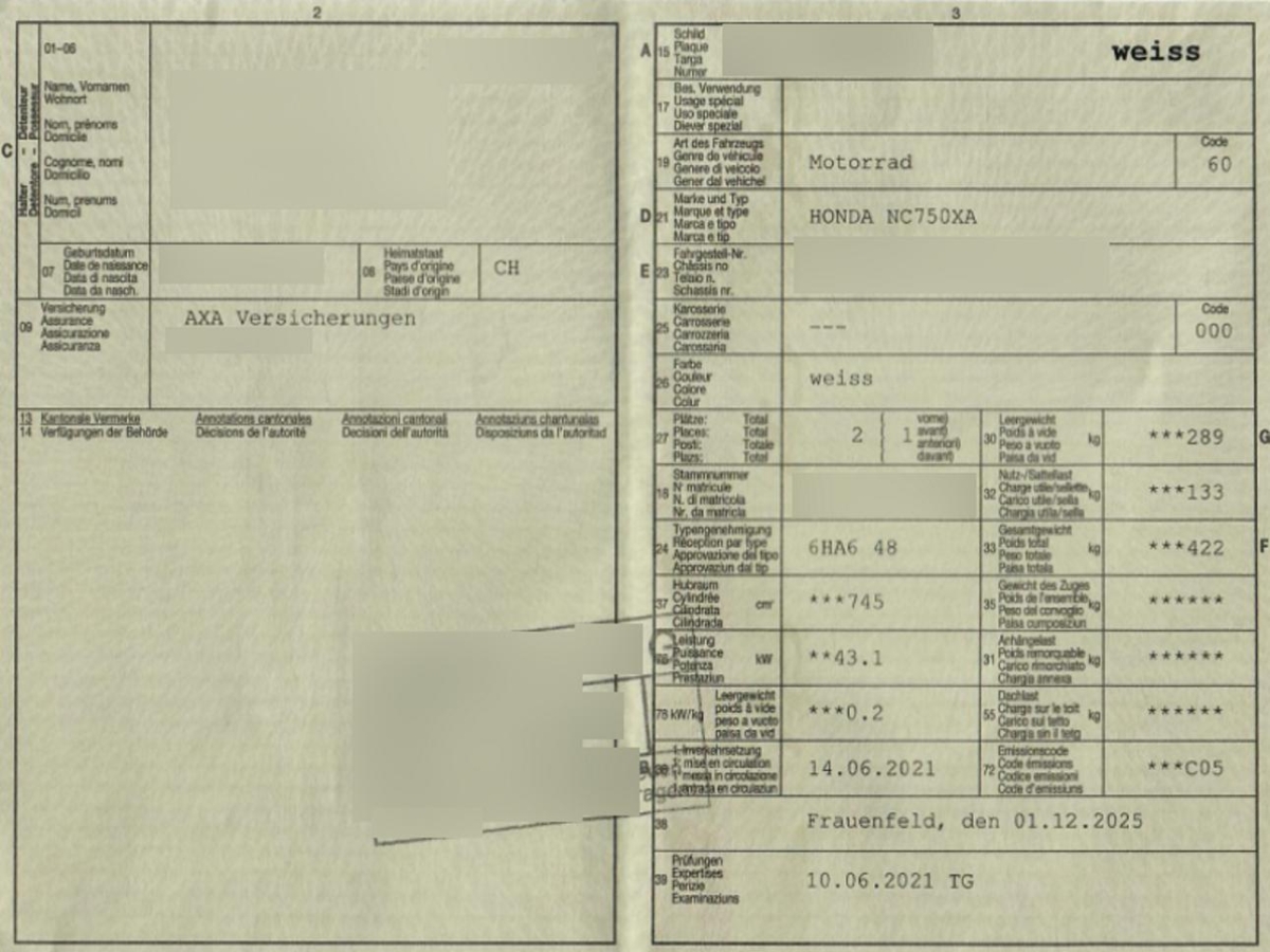 Fahrzeugausweis Vorhanden