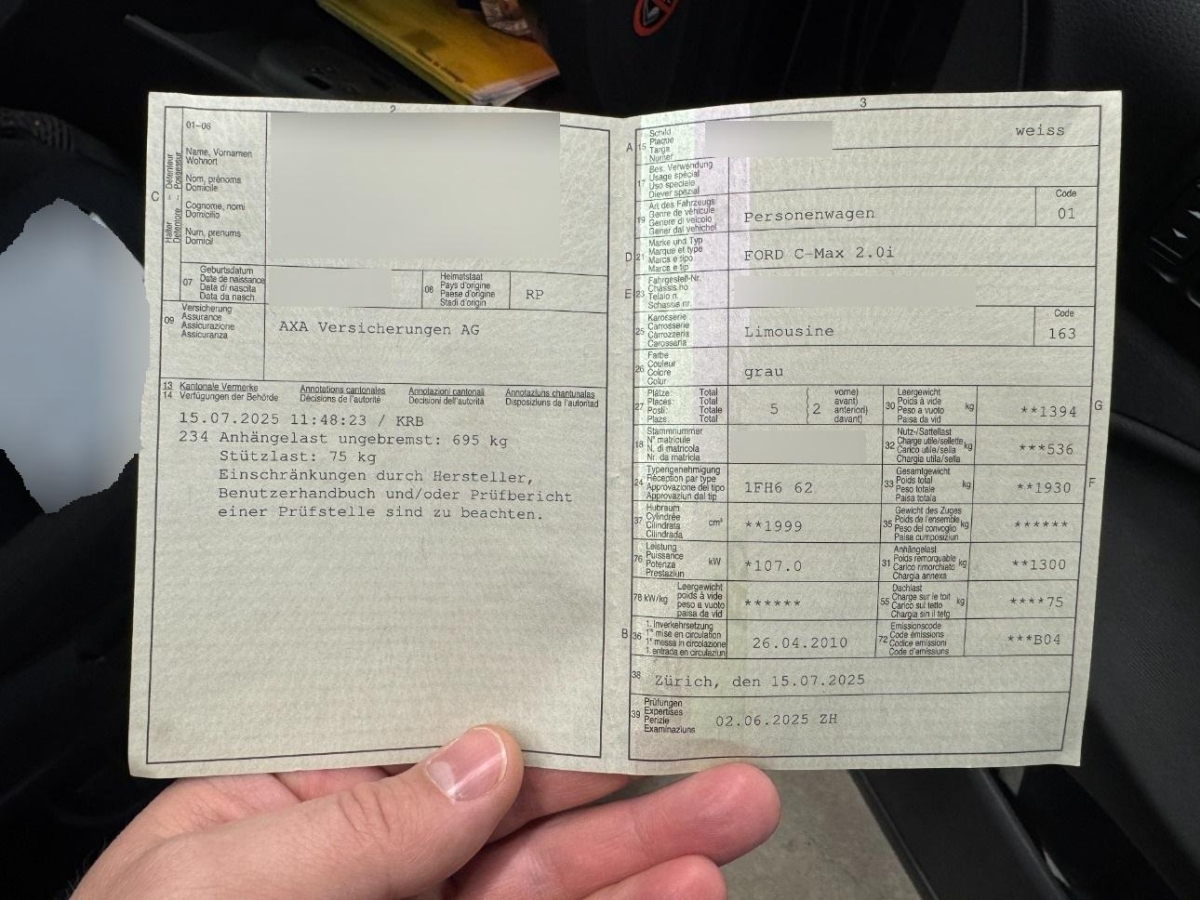 | Fahrzeugausweis | Vorhanden |