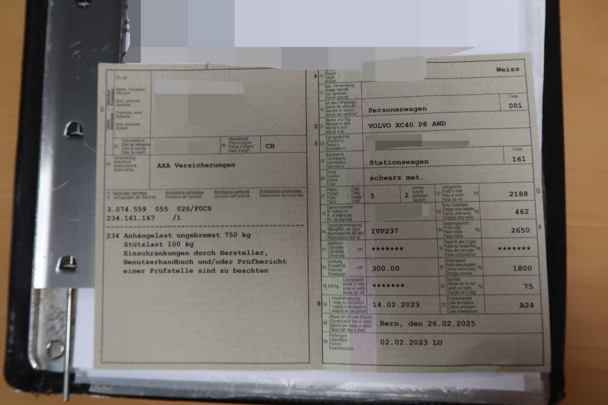 Fahrzeugausweis Vorhanden
