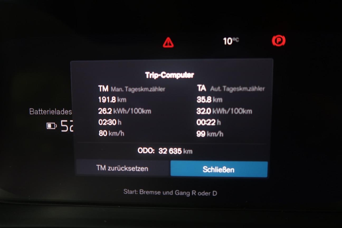 Blinkleuchten (LED) in Aussenspiegel integriert, Convenient Entry und Start – Fahrzeugstart über die Betätigung des Bremspedals und das Einlegen des Rückwärts- (R) oder Vorwärtsgangs (D), Geschwindigkeitsbegrenzer, Lenkrad: Multifunktionslenkrad, Lenkrad: Sicherheitslenksäule adaptiv, Deaktivierung der Hochvoltbatterie im Falle einer Kollision, Mittelarmlehne hinten mit 2 Getränkehaltern, Assist: Einparkhilfe vorn, seitlich und hinten – mit automatischem Bremseingriff (hinten), Assist: Hill Descent Control (HDC), Gepäcktrennnetz, Kopfstützen hinten, Licht: LED-Scheinwerfer Thors Hammer mit Fernlichtassistent und integriertem LED-Tagfahrlicht, Mittelarmlehne vorne mit integriertem Staufach und Getränkehaltern, Aussenspiegel und Heckscheibe beheizbar (automatisch), WHIPS Schleudertrauma-Schutzsystem – inkl. Durchtauchschutz auf allen Sitzplätzen und energieabsorbierende Sitzpolsterungen vorn, Aussenspiegel elektrisch einklappbar, Licht: Nebelschlussleuchte, Assist: Ready to Drive notification, Sitze: Beinauflagen einstellbar, Dachkantenspoiler, Assist: Driver Awareness – Blind Spot Information System (BLIS) – Totwinkelassistent inkl. Spurwechsel-Warnung vor sich schnell nähernden Fahrzeugen inklusive Lenkeingriff bei Nichtbeachtung der Warnsignale – Cross Traffic Alert (CTA) – Querverkehrs-Warnung mit Bremseingriff – Warnung vor sich seitlich nähernden Fahrzeugen, Fahrradfahrern und Fussgängern beim rückwärtigen Ausparken inkl. Bremsung bis zum Stillstand bei Nichtbeachtung der Warnsignale – Heckaufprallabschwächung, Licht: Drittes Bremslicht, Assist: Automatisches Notbremssystem mit Erkennung von Fahrzeugen, Fahrradfahrern und Fussgängern – inkl. Kreuzungsbremsassistent und Notbremsassistent bei Gegenverkehr, Innen- und Aussenspiegel automatisch abblendend, Klima: Vorklimatisierung des Fahrzeuginnenraums auf 22°C (max. 30 Minuten) – Steuerung über das Menü, Air purfilter: Erweitertes Luftqualitätssystem mit Feinstaubfilterung – nach Luftqualitätsstandard PM2,5, Assist: Lane Keeping Aid (LKA – Spurhalteassistent), Media: Audiosystem High Performance Sound – 8 Lautsprecher, 250 Watt Leistung, Air Woofer Technology, Assist: Festbremsautomatik – Automatisches Festbremsen nach dem Auslösen der Airbags oder der Gurtstraffer, um Folgeunfälle zu verhindern, Abfalleimer herausnehmbar, Räder: Reifendichtmittel mit 12-Volt-Kompressor – Höchstgeschwindigkeit 80 km/h, Airbag: Airbags für Fahrer und Beifahrer mit zweistufigem Auslösesystem – Knieairbag für Fahrer, Seitenairbags für Fahrer und Beifahrer und Kopf-/Schulterairbags (IC) für alle Insassen, Assist: Rückfahrkamera, Dachantenne (Finne), Recharge Emblem auf der C-Säule, Optischer Unterfahrschutz vorne und hinten in Glossy Black, Panikfunktion in Funkfernbedienung integriert, Elektronische Parkbremse, Haken im Gepäckraum (zur Befestigung von Einkaufstaschen), Sitze: Beifahrersitz höhenverstellbar, Anhänger Stabilisierungkontrolle TSA – Vorbereitung, Assist: Road Edge Detection – System zum Schutz vor unbeabsichtigtem Verlassen der Fahrbahn durch Lenk- und Bremseingriffe, Volvo VSP Garantie: 5 Jahre oder 150’000 – Gratisservice: 10 Jahre oder 150’000 km. Reparaturen: 3 Jahre oder 150’000 km (ab 1. Inv.)., Assist: Parkkamera mit 360° Surround View – inkl. Einparkhilfe vorn, seitlich und hinten mit automatischem Bremseingriff (hinten), Sitze: Rücksitzbank im Verhältnis 60/40 oder ganz umklappbar, Assist: Einparkhilfe vorn und hinten mit automatischem Bremseingriff (hinten), Assist: Driver Alert – Aufmerksamkeitswarner, Media: Android Infotainmentsystem – 9″ – Touchscreen (22,9-cm-Diagonale) Google Services (beinhaltet Google Maps, Google Assistant, Google Play Store und unbegrenztes Datenvolumen* für die ersten 4 Jahre), – Bluetooth-Freisprecheinrichtung inkl. Audiostreaming, Digitale Fahrzeugbedienungsanleitung, Digitaler Radioempfang (DAB+), Media: Smartphone Integration Apple CarPlay und Android Auto – Integration des Apple iPhone und Android Smartphones in das Android Infotainmentsystem, Media: Zwei USB-C-Anschlüsse, Durchladeluke hinter der Mittelarmlehne im Fond, Elektronische Differentialsperre, Assist: Driver Assistance – Adaptive Geschwindigkeitsregelanlage – Emergency Stop Assist (automatisches Nothaltesystem bei Nichtbeachtung von Warnhinweisen infolge von ausbleibenden Lenk-, Brems- und Beschleunigungsaktivitäten des Fahrers inkl. Aktivierung der Warnblinkanlage und automatischer Bremsung bis zum Stillstand und Notruf über Volvo Cars App) – Pilot Assist (Spurführungsassistent mit adaptiver Geschwindigkeitsregelanlage bis zu Geschwindigkeiten von 130 km/h), Sitze: Fahrersitz höhen- und längen, inklusive Neigungseinstellung, Räder: 19″ Leichtmetallfelgen, 5 Doppelspeichen Sport-Design Glossy Black/Diamond Cut – Ganzjahresbereifung 235 /50 R19 (vorn) und 255 /45 R19 (hinten), Sitze: Lendenwirbelstütze für Fahrer- und Beifahrersitz – 4-Wege elektrisch einstellbar, Licht: LED Nebelscheinwerfer, Scheinwerferwaschdüsen, Warnton/-leuchte für nicht angelegte Sicherheitsgurte auf allen Sitzplätzen, Parktickethalter, Recharge Pure Electric Frontgrill und Grilleinfassung in Wagenfarbe, Assist: Oncoming Lane Mitigation, Dachhimmel Charcoal, Gurthöhenverstellung vorn, Textilfussmatten, Bremssystem mit 18″ Bremsanlage vorne, 18″ hinten, Make up-Spiegel beleuchtet für Fahrer, Sitze: Kopfstützen der 2. Sitzreihe umlegbar (elektrisch), Licht: Notfall-Bremsleuchten – bei starker Verzögerung schnelles Aufleuchten der Bremsleuchten; bei Geschwindigkeiten unter 10 km/h automatische Aktivierung der Warnblinkanlage, Aktiv-Sicherheitsgurte mit Gurtstraffer, Media: Digitale Instrumentierung – Vollgrafisches 12,3″-Display (31,2-cm-Diagonale) mit zwei variablen Rundinstrumenten und Infodisplay (z. B. für Navigations-Kartenansicht), Erste-Hilfe-Tasche und Warndreieck, Getönte Scheiben, Make up-Spiegel beleuchtet für Beifahrer