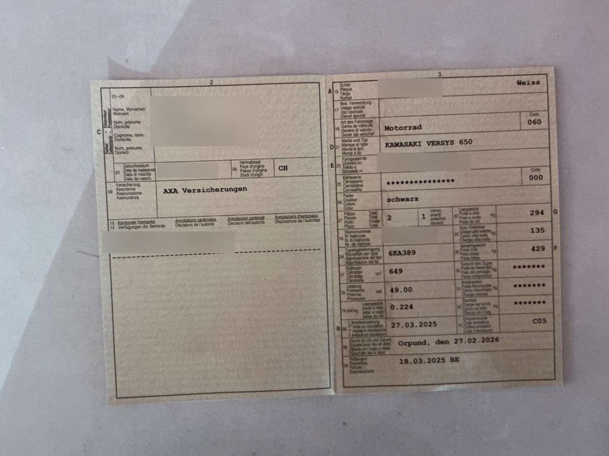 Fahrzeugausweis Vorhanden