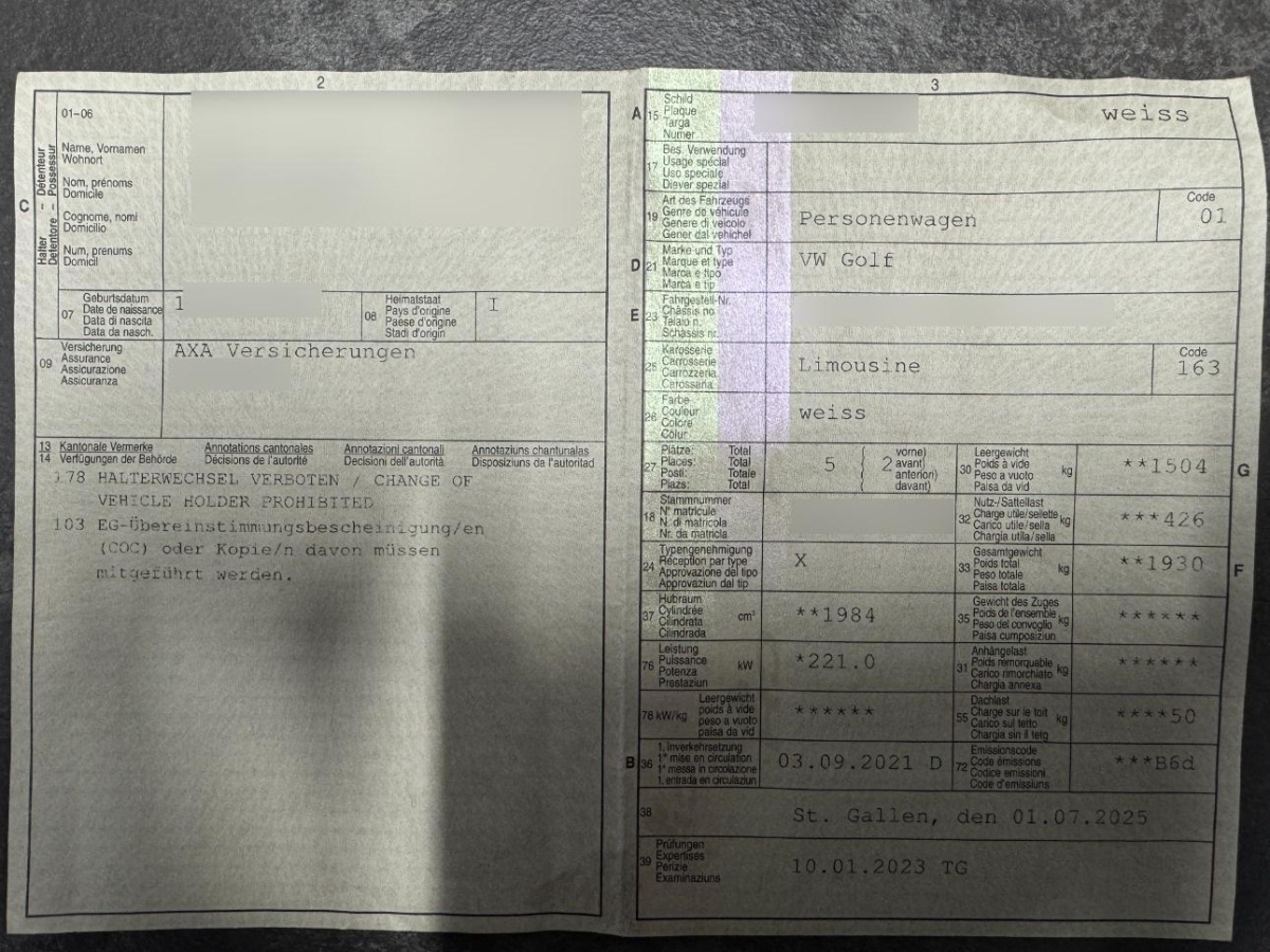 Make-Up Spiegel beleuchtet in den Sonnenblenden, Sitze: Kreuzstütze für Beifahrersitz verstellbar, Durchlademöglichkeit in der Rücksitzbank, inkl. Mittelarmlehne hinten mit 2 Becherhalter, Garantie: VW Garantie: 2 Jahre ohne Kilometerbegrenzung (ab 1. Inv.), Vorderachs-Differenzialsperre, Servolenkung geschwindigkeitsabhängig, Scheibenbremsen vorne 18-Zoll mit roten Platten und Scheibenbremsen hinten 17-Zoll rot lackiert, 3-Punkt-Sicherheitsgurte auf allen Plätzen, Räder: Tire Mobility Set (12-Volt-Kompressor und Reifendichtmittel), Licht: IQ.LIGHT – Matrix LED-Scheinwerfer – IQ.LIGHT – LED-Matrix-Scheinwerfer mit LED-Tagfahrlicht – Dynamische Fernlichtregulierung „Dynamic Light Assist” für LED-Matrix-Scheinwerfer – Dynamisches Kurvenfahrlicht – Dynamische Blinkleuchte vorn und hinten – Schlechtwetterlicht und Abbiegelicht (für die Linie Life), Tür und Seitenverkleidung Schaumfolie und Gewebe, Media: Online-Dienst mit OCU, Licht: Drittes Bremslicht, Nichtraucherausführung – Ablagefach und 12-V-Steckdose vorn, Gurtstraffer mit Gurtkraftbegrenzer, Assist: Notbremsassistent „Front Assist” mit Fussgänger- und Radfahrererkennung, Sitze: Sportsitze vorn, Aussenspiegel rechts und links beheizt, elektrisch verstell- / und einklappbar mit Memory-Funktion, Mittelarmlehne hinten, Assist: Abbiegebremsfunktion und Ausweichunterstützung, Sitze: Top-Sportsitze vorn, Sitzbezug in „ArtVelours”, Aussenspiegel und Türgriffe in Wagenfarbe, Fahrwerk: Fahrprofilauswahl, Sitze: Beifahrersitz höhenverstellbar, Assist: Auspark- und Spurwechselassistent „Side Assist” und Ausstiegswarner, Fahrwerk: Sportfahrwerk (15mm tiefer) inkl. Progressivlenkung für 19-Zoll Leichtmetallräder, ISOFIX-Halteösen für Kindersitze (auf den äusseren Rücksitzen und auf dem Beifahreresitz, i-Size-Kompatibel), Garantie: VW Garantie: 12 Jahre Karosserie-Garantie gegen Durchrostung, Sitze: Kreuzstütze für Fahrersitz verstellbar, Media: DAB+ (Digital Audio Broadcasting), Media: Wireless App-Connect, Airbag: Airbag Beifahrer deaktivierbar, Licht: LED Heckleuchten, Assist: ParkPilot vorne und hinten – Akkustische Warnsignale bei Hindernissen im Front- und Heckbereich, Beifahrerspiegelabsenkung, Drehzahlmesser, Leseleuchten vorne, Dekor: Dekoreinlagen „Black Metal Chrome” für Instrumententafel und Türverkleidungen vorn, Ladeboden variabel, Media: We Connect – Kostenlos und ohne Laufzeitbeschränkung – Mobiler Schlüssel – Fahrzeugstatus – Automatische Unfallmeldung – Fahrdaten – Parkposition – Service-Terminplanung, Media: We Connect Plus – Kostenlos und begrenzt auf eine Laufzeit von 3 Jahren Inhalt wie „We Connect”, jedoch zusätzlich mit: – Gebietsbenachrichtigung – Geschwindigkeitsbenachrichtigung – Hupen & Blinken – Verriegelung & Entriegelung – Abfahrtszeiten – Klimatisierung – Laden, Schlüsselloses Startsystem – Keyless Start, Teppichfussmatten vorne und hinten, Heckscheiben-Wisch-/Waschanlage, Beide Make up-Spiegel beleuchtet, Media: We Connect Basisfunktionen – Kostenlos und ohne Laufzeitbeschränkung – Notrufsystem eCall – Notruf-Service – Pannenruf, Assist: Elektronische Parkbremse inkl. Auto-Hold-Funktion, Mittelarmlehne vorn inkl. 2 USB-C Schnittstellen hinten – Mittelarmlehne vorn höhen- und längseinstellbar – 2 USB-C Ladebuchsen an der Mittelkonsole hinten, Klima: 3-Zonen Klimaanlage Air Care Climatronic inkl. Bedienteil hinten und Allergenfilter, Lenkrad: Lenkrad längs- und höhenverstellbar, Zentralverriegelung mit Fernbedienung, Warndreieck, Frontscheibe mit Wärmeschutzverglasung, Sitze: ISOFIX-Befestigungspunkte für Kindersitz an den äusseren Rücksitzen, Media: Radio „Ready 2 Discover” inkl. „Streaming & Internet” – 10 Zoll Display mit Touch-Bedienung – In-Car Shop – „Streaming & Internet” für Webradio, Media-Streaming und WLAN-Hotspot, Licht: Nebelschlussleuchte, Sitze: Lendenwirbelstützen vorn, Media: 6+1 Lautsprecher, Licht: Schlechtwetterlicht und Abbiegelicht, Airbag: Airbag Fahrer und Beifahrer, Wegfahrsperre elektronisch, 3 Kopfstützen hinten, Performance-Titanabgasanlage entwickelt mit Akrapovic, Antriebsschlupfregelung (ASR), Notrufsystem, USB-Anschluss, Räder: 4×18-Zoll Leichtmetallräder „Richmond” – 7.5 J x 18, Reifen 225/40 R18 – Radsicherungen mit erweitertem Diebstahlschutz, Mehrfarbige Ambientebeleuchtung im Innenraum – Ambientebeleuchtung mit einer Auswahl zwischen 30 verschiedenen Farben (Beleuchtung im Armaturenbrett und an den Türen) – LED-Leuchten im Fussraum vorn, Lichtfarbe wählbar, ABS, EBD elektronische Bremskraftverteilung, Lenkrad: Multifunktions-Sportlenkrad in Leder mit Schaltwippen, Sitze: Fahrersitz höhenverstellbar, Assist: Verkehrszeichenerkennung, Katalysator geregelt, Airbag: Seitenairbags vorne und Kopfairbags vorne und hinten, Media: Digital Cockpit Pro, Elektronisches Stabilitäts-Programm ESP, Bordwerkzeug und Wagenheber, Assist: Multifunktionskamera, Scheibenwischer vorne mit Intervall, Assist: Müdigkeitserkennung, Lackierung: Pure White Uni-Lackierung, Kopfstützen vorne, Heckscheibenheizung, Foliendekor über dem Seitenschweller, Doppelton-Signalhorn, Assist: Spurhalteassistent Lane Assist, Licht: Umfeldbeleuchtung mit Logo-Projektion, Fussgängerschutz, Polster: Velours-Ausstattung, Multikollisionsbremse, 12 Volt-Steckdose im Laderaum, Leiste zwischen den Scheinwerfern und Türgriffmulden beleuchtet, Licht: LED-Tagfahrlicht, Räder: Reifenkontrollanzeige, Warnton und -leuchte für nicht angelegte Gurte vorne und hinten, Progressivlenkung, Getriebe: Sequentielles 7-Gang-Getriebe mit Automatikfunktion, Media: Telefonschnittstelle Bluetooth mit induktiver Ladefunktion, Sitze: Rücksitzbank ungeteilt, Lehne asymmetrisch geteilt umklappbar, mit Mittelarmlehne, 5 Türen, Start-Stopp System mit Bremsenergie-Rückgewinnung, Heckspoiler in Wagenfarbe, Seitenscheiben hinten und Heckscheibe abgedunkelt, Assist: Automatische Distanzregelu