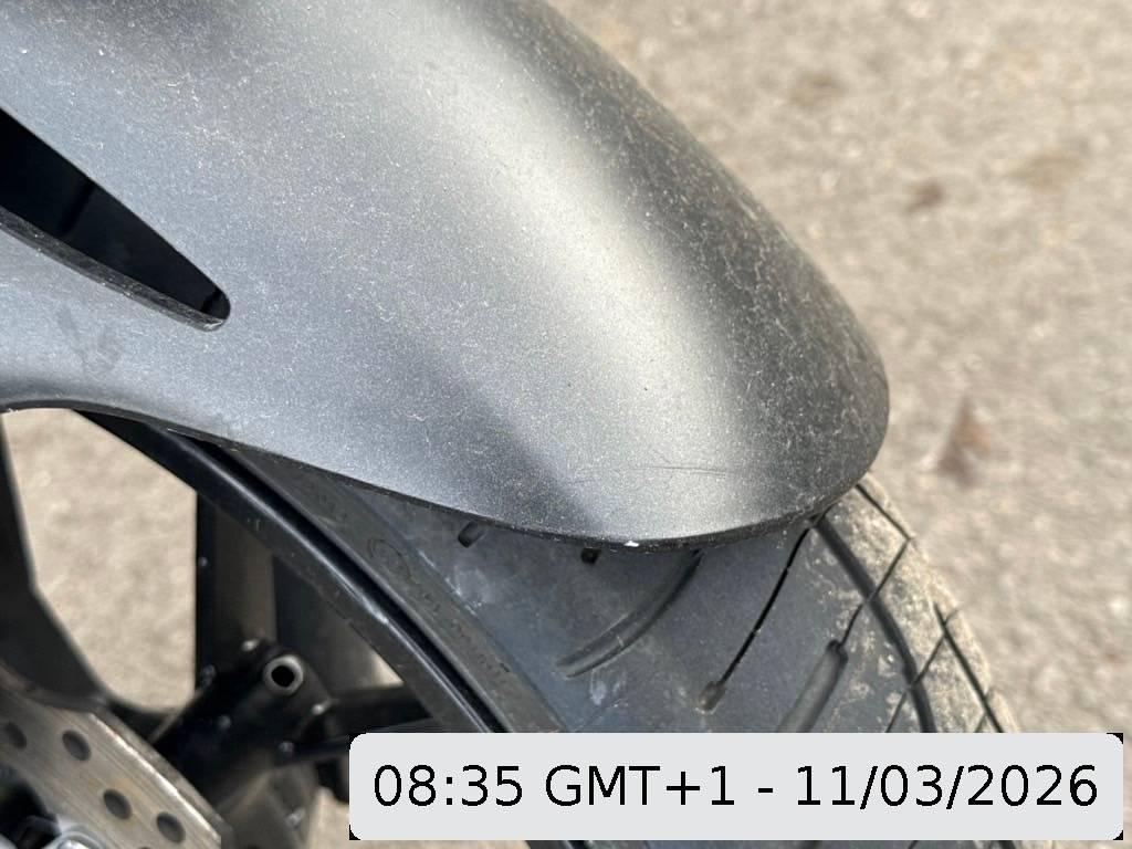 Auspufftopf, Aussenspiegel links, Aussenspiegel rechts, Fussraster links, Fussraster rechts, Gabelholm, Griff rechts, Kupplungsgehäuse, Kupplungsgehäuse, Lenker, Rad vorne, Scheinwerfer, Schutzblech vorne, Verschalungen rechts, Verschalungen vorne