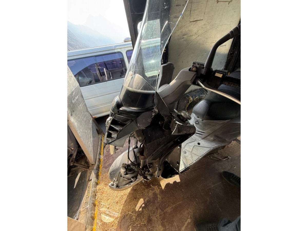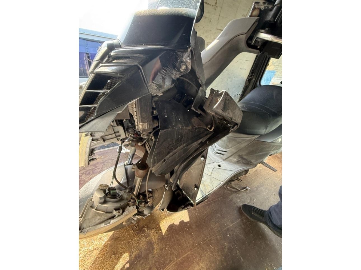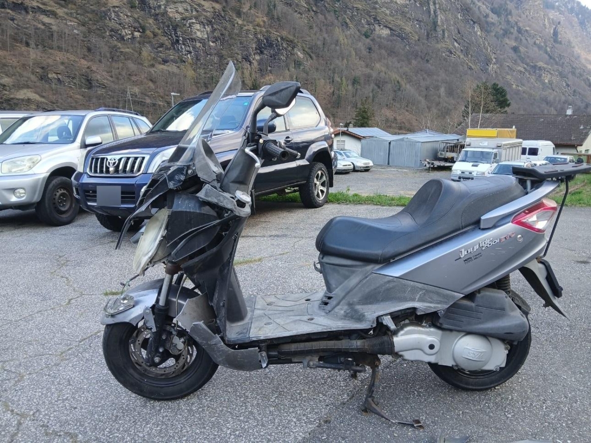 Auspufftopf, Aussenspiegel links, Aussenspiegel rechts, Front, Fussraster links, Fussraster rechts, Gabelholm, Griff links, Griff rechts, Heckverkleidung, Lenkanschlag, Lenker, Lenkschloss, Motorgehäuse, Rad vorne, Scheinwerfer, Schutzblech hinten, Schutzblech vorne, Seite links, Seite rechts, Verschalungen hinten, Verschalungen links, Verschalungen rechts, Verschalungen vorne, Windschutzscheibe