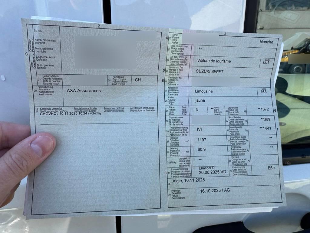 Assist: Fahrerüberwachungssystem (DMS), LCD Multifunktionsfarbdisplay, Licht: Guide-me-home Funktion, Elektrische Fensterheber vorne + hinten, Media: USB-Anschluss (1x USB-A + 1x USB-C), Klima: Klimaanlage manuell, mit Pollenfilter, Lenkrad: Bedientasten am Lenkrad für Audio und Telefon, Heckspoiler, Sitze: Fahrersitz höhenverstellbar, Licht: Nebelschlussleuchte, Räder: Leichtmetallfelgen 16J 185/55R16, Airbag: Vorhangairbags, Lenkrad: Lenkrad längs- und höhenverstellbar, Licht: LED Abblendlicht und Fernlicht, Assist: eCall, Licht: LED-Tagfahrlicht, ABS mit elektronischer Bremskraftverteilung und Bremsassistent, Assist: Spurhalteassistent, Start-/Stopp-Automatik, Airbag: Seitenairbags vorne, ISOFIX-Kindersitzverankerung, 12 Volt-Steckdose, Assist: Adaptiver Tempomat + Intelligenter Geschwindigkeitsassistent (ISA), Lenkrad: Lederlenkrad, Assist: Querverkehrswarner hinten, Privacy Glass, Assist: Notbremssystem mit Kollisionswarner, Elektrisch verstell- und heizbare Aussenspiegel, Media: Suzuki Connect App (3 Jahre kostenlos), Assist: Verkehrszeichenerkennung, Servolenkung, Assist: Warnsystem für Müdigkeit und Aufmerksamkeit, Sonnenblenden vorne mit Schminkspiegel (Fahrerseite), Zentralverriegelung mit Fernbedienung, Polster: Stoff-Ausstattung, Wegfahrsperre elektronisch, Media: 6 Lautsprecher, Sitze: Rücksitzlehne separat umklappbar (60/40), Sonnenblenden vorne mit Schminkspiegel (Beifahrerseite), Dreipunkt-Sicherheitsgurte auf allen Plätzen, Getriebe: 5-Gang-Getriebe, Airbag: Airbag für Fahrer und Beifahrer (Beifahrerseite deaktivierbar), Garantie: 3 Jahre oder 100’000 km (ab 1. Inv.), Aussenspiegel und Türgriffe in Wagenfarbe, Licht: Lichtautomatik, Bodenteppiche, Assist: Berganfahrhilfe, Assist: Spurleitassistent, Assist: Rückfahrkamera, Keyless Start (schlüsselloses Einsteigen und Starten), Räder: Reifendruck-Kontrollanzeige, ESP mit Traktionskontrolle, Assist: Spurwechselassistent, Lackierung: Metallic-Lackierung Flame Orange Pearl Metallic, Assist: Parksensoren hinten (akustisch), Media: USB-Anschluss für externe Audioquellen, Licht: Fernlicht-Assistent, Gurtstraffer und Gurtkraftbegrenzer auf allen Plätzen, Media: 9 Zoll Touchscreen-Multimediasystem mit Smartphone-Anbindung, Bluetooth und DAB+ und Navigation, Sitze: Sitzheizung vorne