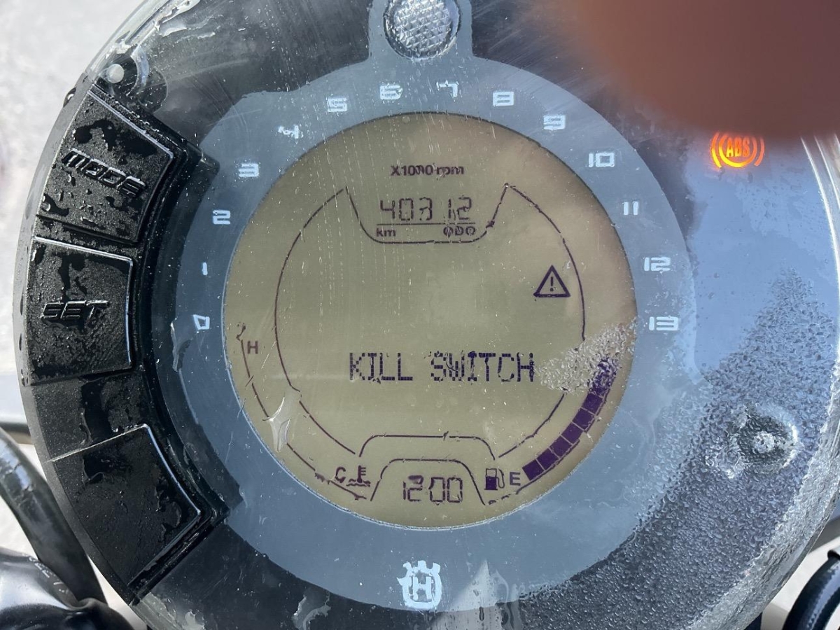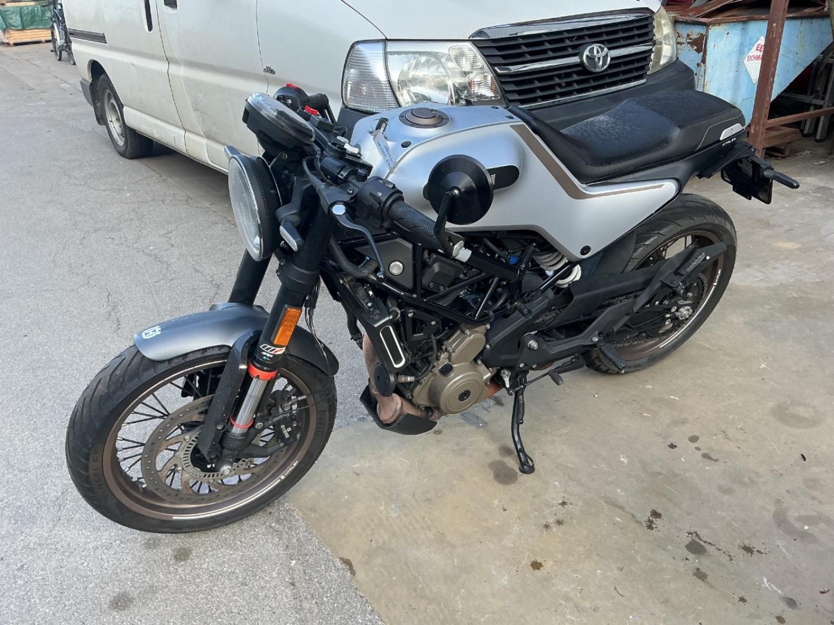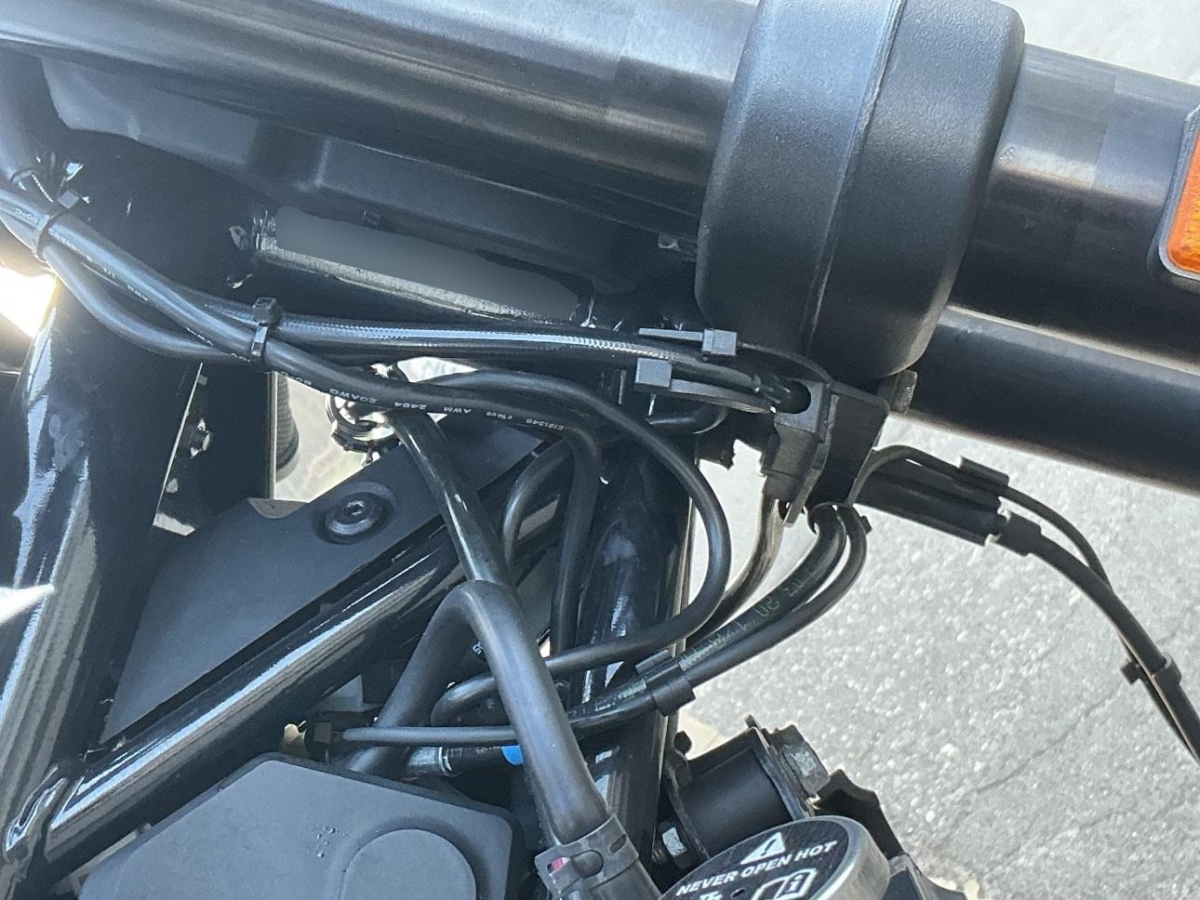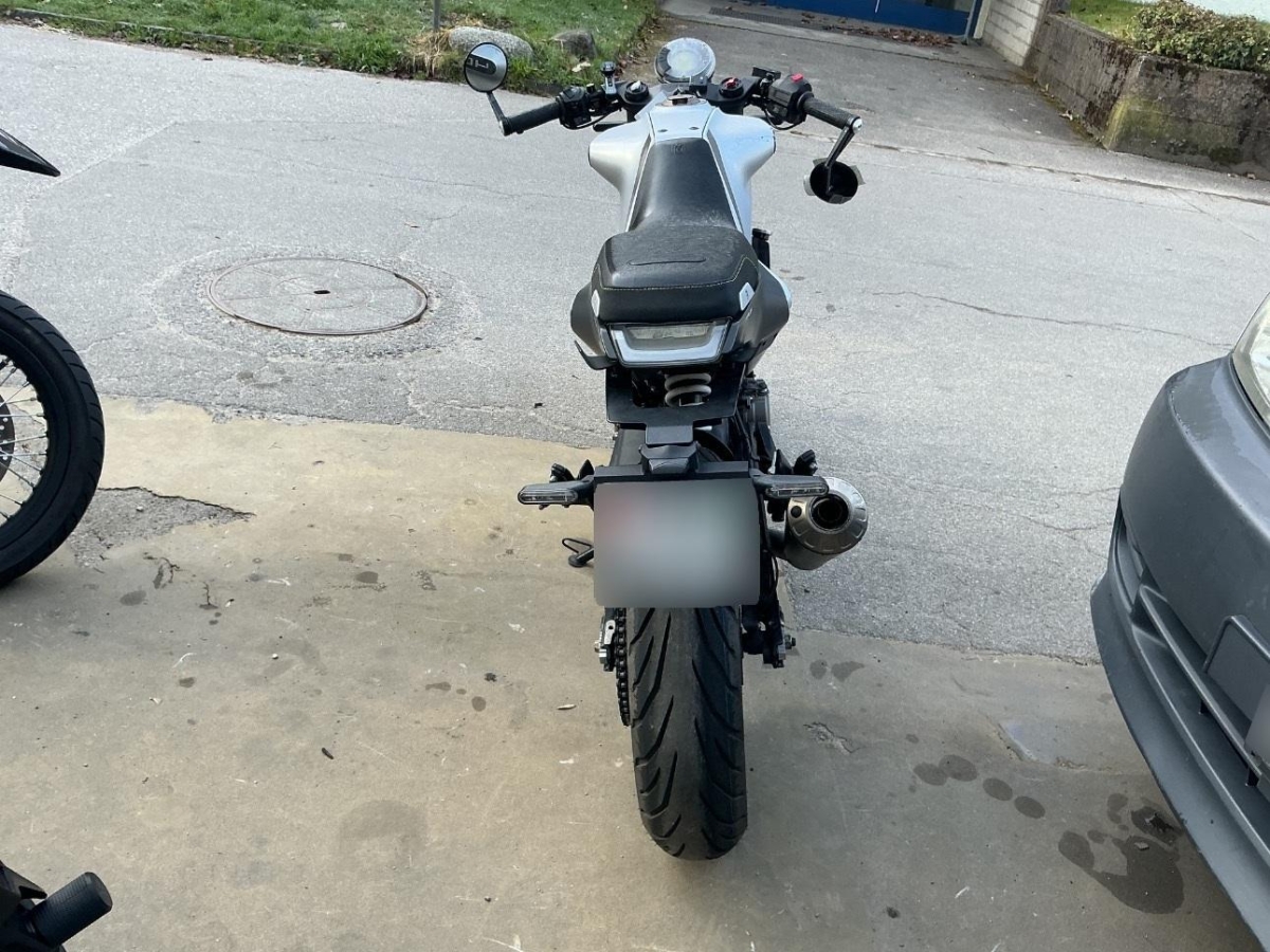 Auspuffkollektor, Auspufftopf, Aussenspiegel rechts, Front, Fussraster rechts, Lenker, Seite rechts, Tank