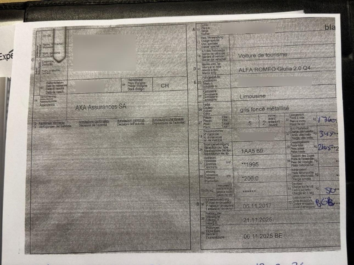 | Fahrzeugausweis | Vorhanden |