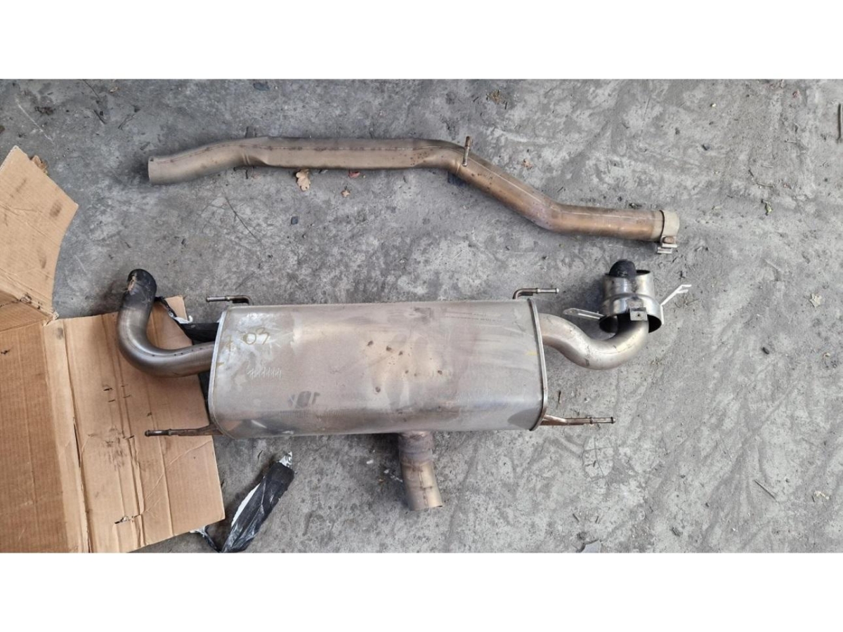 Zurzeit ist ein Zubehör Auspuff-Endtopf montiert „OHNE ZERTIFIKAT”. Ein Auspuff-Endtopf wird zum Fahrzeug gelegt. Es ist NICHT garantiert, dass dies der richtige originale Auspuff-Endtopf ist sowie es nicht garantiert ist,. dass die Rohverbindung passend ist und es ist nicht garantiert dass mit den mitgelieferten Teile der originale Zustand wieder hergestellt werden kann. (Risiko)