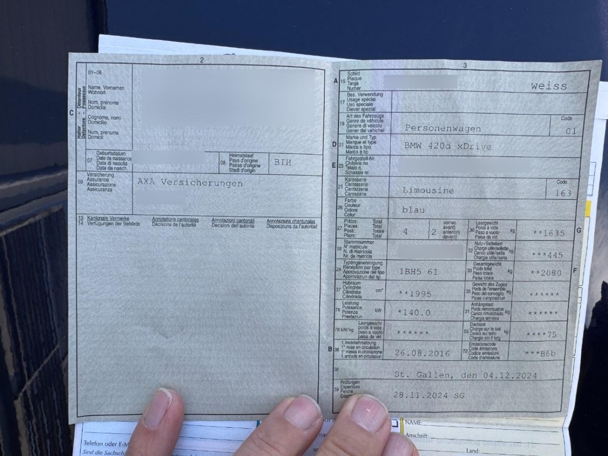 Fahrzeugausweis Vorhanden