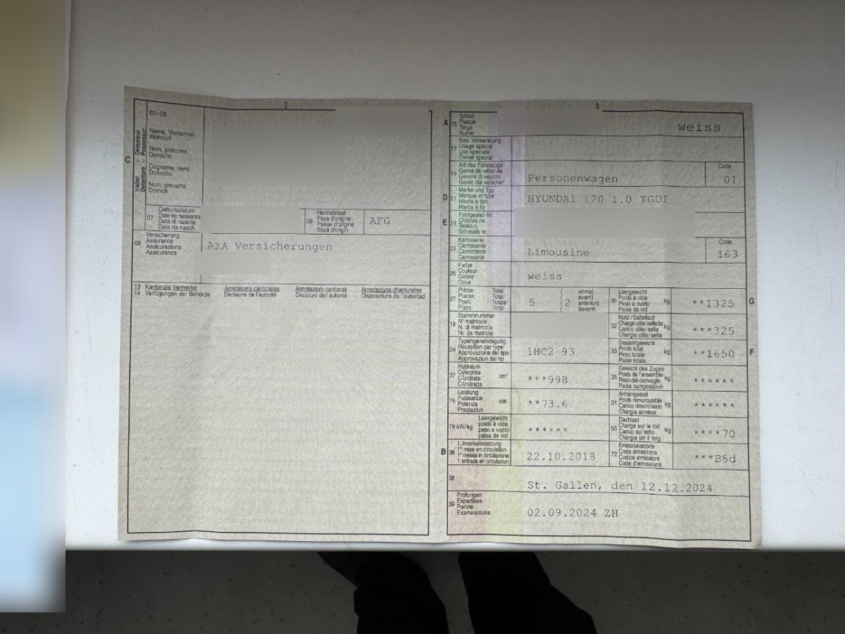 Fahrzeugausweis Vorhanden