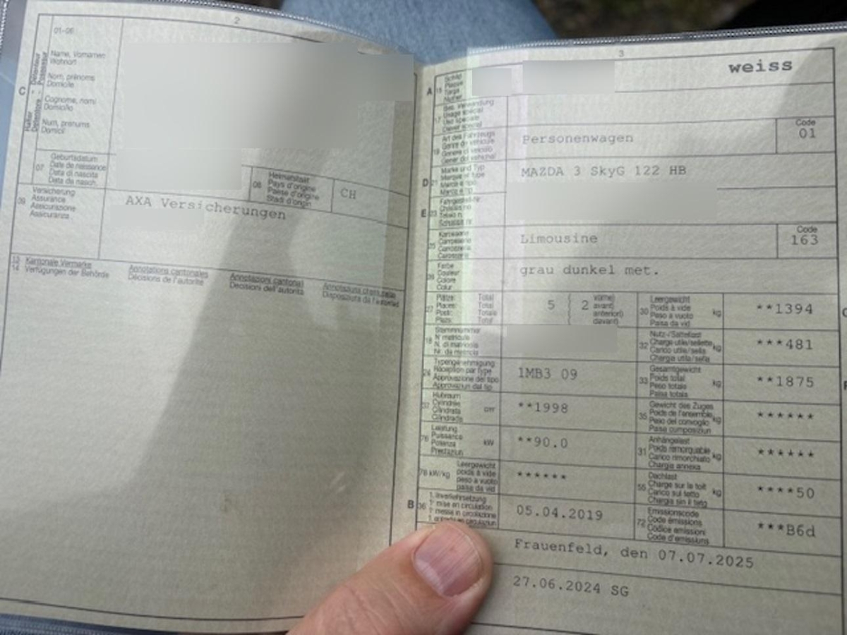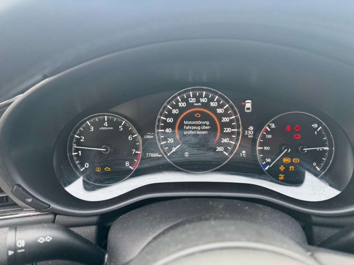 Licht: Drittes Bremslicht, Getönte Scheiben Privacy, Licht: Licht- und Regensensor, Assist: Berganfahrhilfe, Lenkrad und Schalthebelgriff in Leder, Media: Touchscreen, Assist: 360° Kamera inklusive Rückfahrkamera, Adaptiver Tempomat ACC, E-Call, Dachspoiler, Aussenspiegel in Wagenfarbe, Stopp-/Start-System, Knie-Airbag für Fahrer, Media: Head-Up Display, Licht: LED-Tagfahrlicht, Licht: Coming-home-Funktion, Pre-Crash-Sicherheitsystem, Licht: Automatisches Fernlicht, Scheibenwischer-Enteiser, Airbag: Airbag Fahrer und Beifahrer, Assist: Querverkehrsassistent hinten, Airbag: Kopfairbags vorne und hinten, Getriebe: 6-Gang-Getriebe, Assist: Spurwechselassistent, Digital Uhr, Innenspiegel automatisch abblendbar, Licht: Matrix LED Scheinwerfer, Wegfahrsperre elektronisch, Assist: Einparkhilfe vorne, Sitze: Vordersitze heizbar, Innenleuchten LED, 3-Punkt-Sicherheitsgurte auf allen Plätzen, Räder: 4 Leichtmetallfelgen 18J mit Pneu, Auto-Hold-Funktion, Heckscheibenheizung, Drehzahlmesser, Gurtstraffer vorne, Polster: Stoff-Ausstattung, Klima: 2-Zonen-Klimaautomatik, Elektronische Parkbremse, Spurhalteassistent Lane Assist und Totwinkelassistent Blind Spot Detection, Wassertemperaturanzeige, Media: Compatible mit Apple CarPlay und Android Auto, Elektrische Fensterheber vorne + hinten, Lackierung: Uni-Lackierung, Bremsenergie-Rückgewinnung, Licht: LED Heckleuchten, Sitze: Beifahrersitz höhenverstellbar, Media: 12 Lautsprecher, Sitze: Rücksitzlehne geteilt abklappbar, Assist: Rückfahr-Notbremsassistent, Steckdose 12V, Assist: Torque Vectoring, Assist: Verkehrszeichenerkennung TSR, (Traffic Sign Recognition), erfordert Navigationssystem, Rahmloser Innenrückspiegel, Assist: ABS, EBD elektronische Bremskraftverteilung, Lenkrad: Multifunktionslenkrad, Aussenspiegel elektrisch einklappbar, Front Cross Traffic Alert, Sitze: Fahrersitz höhenverstellbar, Katalysator geregelt, Lenkrad: Lenkrad beheizbar, Assist: ATTENTION ASSIST (Aufmerksamkeitsassistent), Diebstahlwarnanlage, Media: USB-Anschluss, Aussenspiegel rechts und links beheizt, Stauassistent, Airbag: Seitenairbags vorne, MZD Connect mit 8,8”-FTF-Farbdisplay und Multi Commander HMI auf der Mittelkonsole, Licht: Nebelschlussleuchte, Servolenkung, Keyless Entry, Media: Bose Premium Audio System, Assist: Traktionskontrolle (TCS-Traction Conrol System), Dachhimmel schwarz, Klima: Pollenfilter (Staubfilter), Sitze: ISOFIX Kindersitzvorrichtung, Media: Bluetooth-Schnittstelle mit Freisprecheinrichtung, Assist: Dynamische Stabilitätskontrolle (DSC), Zentralverriegelung mit Fernbedienung, Park Distance Control hinten, Getönte Scheiben, Start-/Stop-Knopf, Assist: City-Notbremsassistent SCBS mit Fussgängererkennung, Media: Digitaler Radioempfang (DAB/DAB+), Media: Navigationssystem, Rear Cross Traffic Alert (Rückwärts-Auspark-Assistent), Aussentemperaturanzeige, Höhenverstellbare Gurten vorne, Tageskilometerzähler