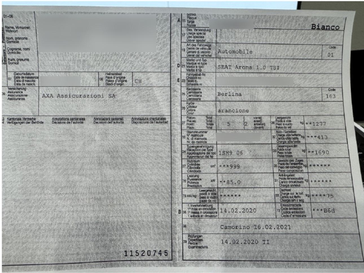 Fahrzeugausweis Vorhanden